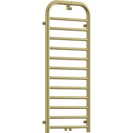 Le radiateur de salle de bains or mat de 1210X500 se distingue par sa forme arrondie et sa finition unique. Il est doté d'un crochet utile pour les serviettes ou le peignoir, ce qui ajoute à sa praticité. Modèle hybride : eau-électricité avec la possibilité d'installer une résistance de 400W en option pour un chauffage supplémentaire ou un séchage des serviettes en dehors de la saison de chauffage. Une vanne doit être achetée pour le chauffage. Le chauffage optionnel et la vanne nécessaire sont disponibles dans la même couleur que le radiateur.
