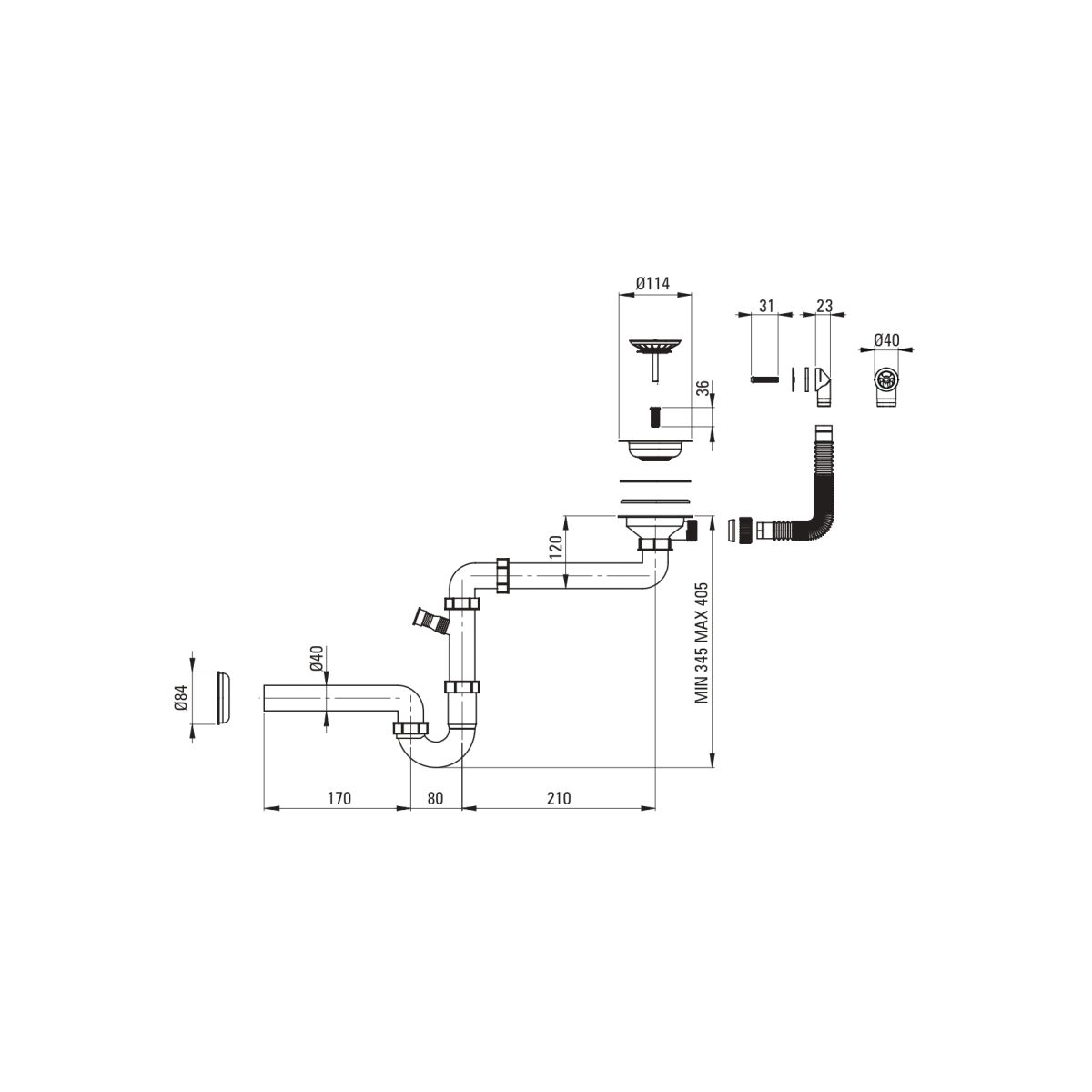 Le siphon est conçu pour les éviers en granit à une cuve. Il s'agit d'un modèle à faible encombrement, grâce auquel vous gagnerez beaucoup d'espace supplémentaire, par exemple pour les corbeilles à papier. L'ensemble comprend un trop-plein rond et un bouchon manuel.