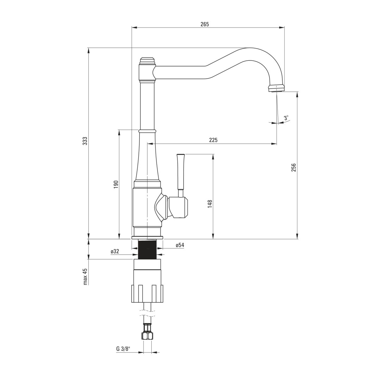 - filetage d'installation : 3/8''