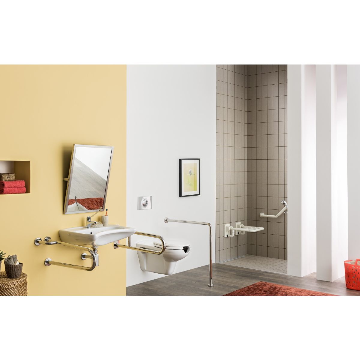 La cuvette Vital WC est fabriquée en céramique dure et durable. Il s'agit d'un modèle sans bride, sans rebords ni recoins inutiles sous lesquels les bactéries et la saleté peuvent s'accumuler. Une ouverture à l'avant de la cuvette facilite les opérations hygiéniques. La cuvette est livrée avec un siège fin flottant. La planche est fabriquée en duroplast et dispose d'un système de fixation rapide.