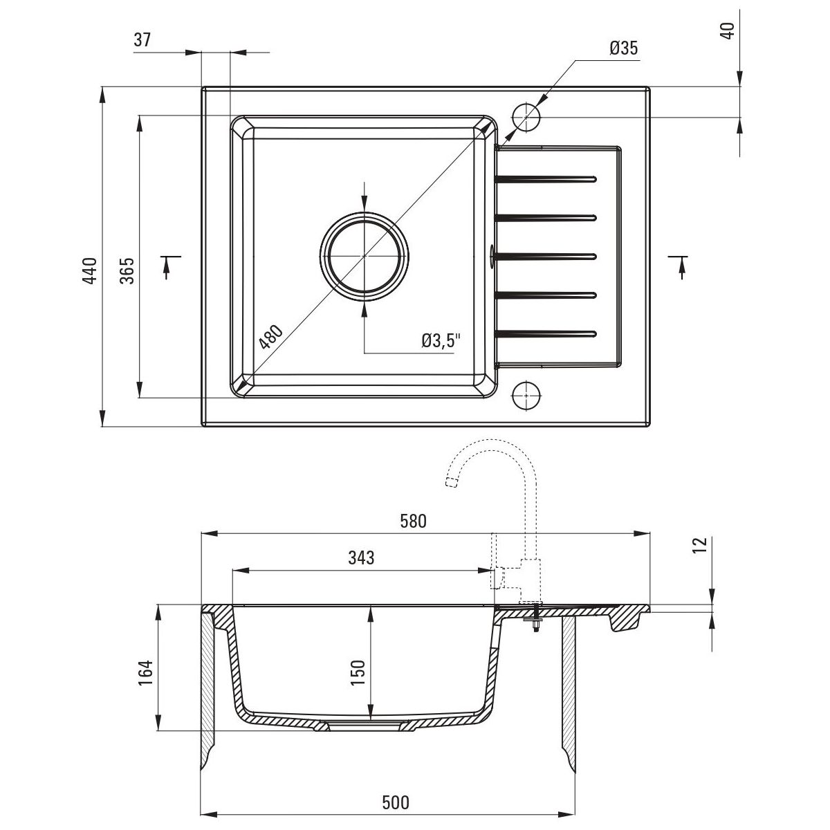 - propriétés du granit Deante : résistance aux chocs, aux températures élevées, à la décoloration, aux chocs thermiques