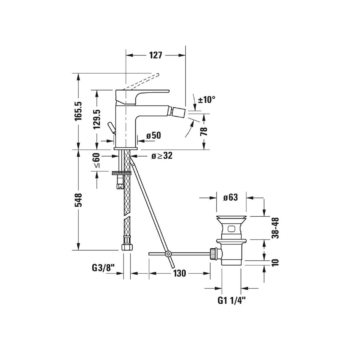 Duravit B.1 mitigeur de bidet sur pied chrome B12400001010