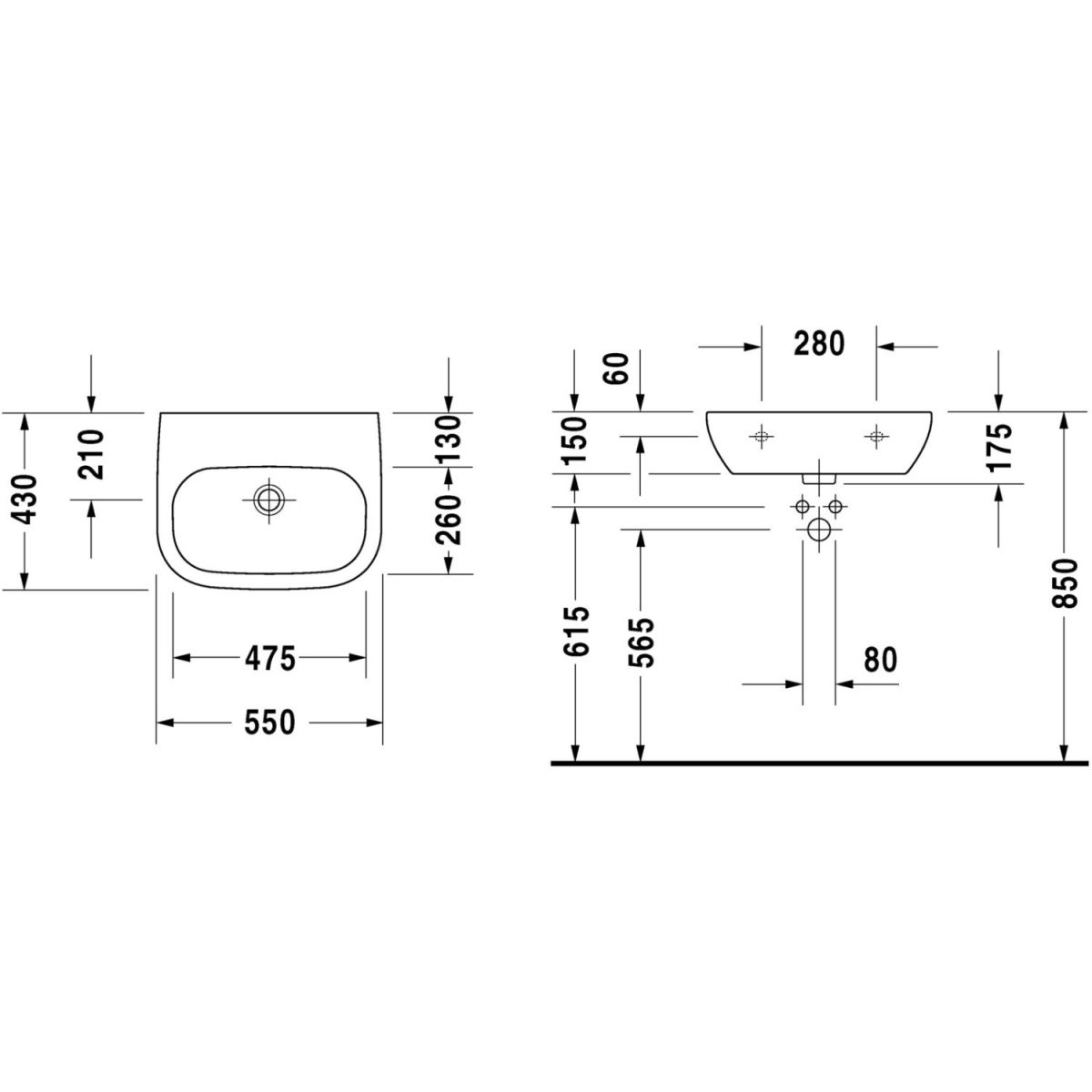 Duravit D-Code lavabo 55x43 cm semi-circulaire classique blanc 23115500702