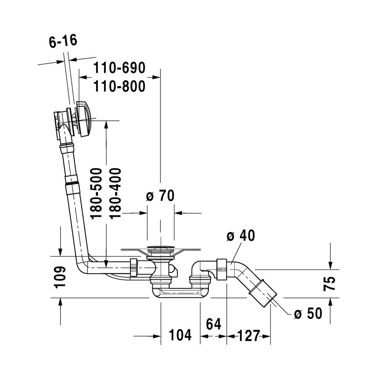 Duravit D-Code siphon de baignoire chrome 790227000001000