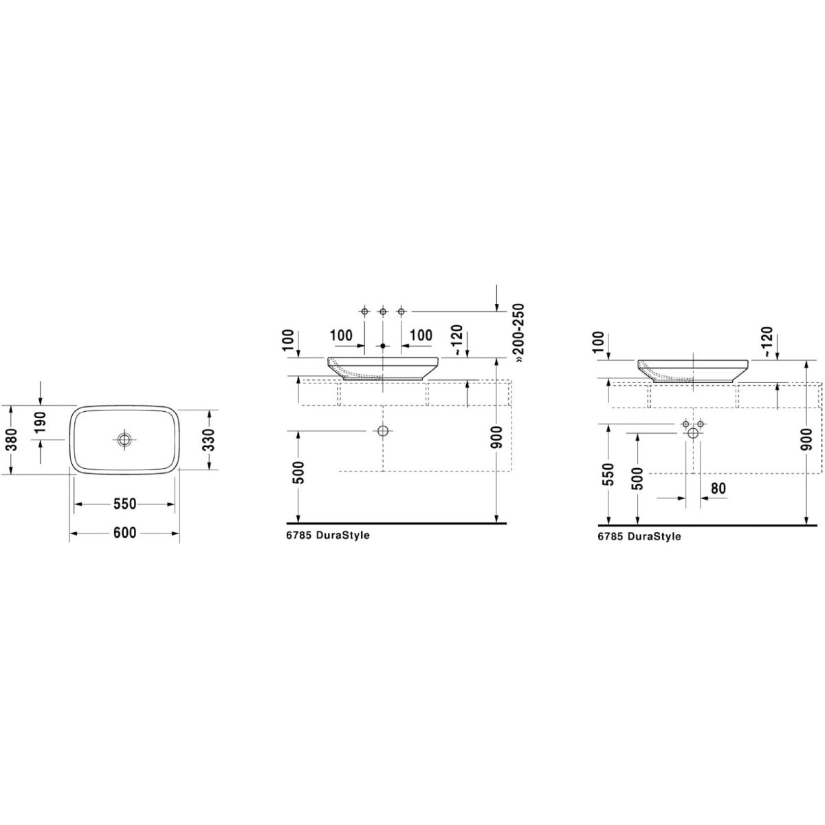 Duravit DuraStyle lavabo 60x38 cm rectangulaire à poser blanc 03496000001
