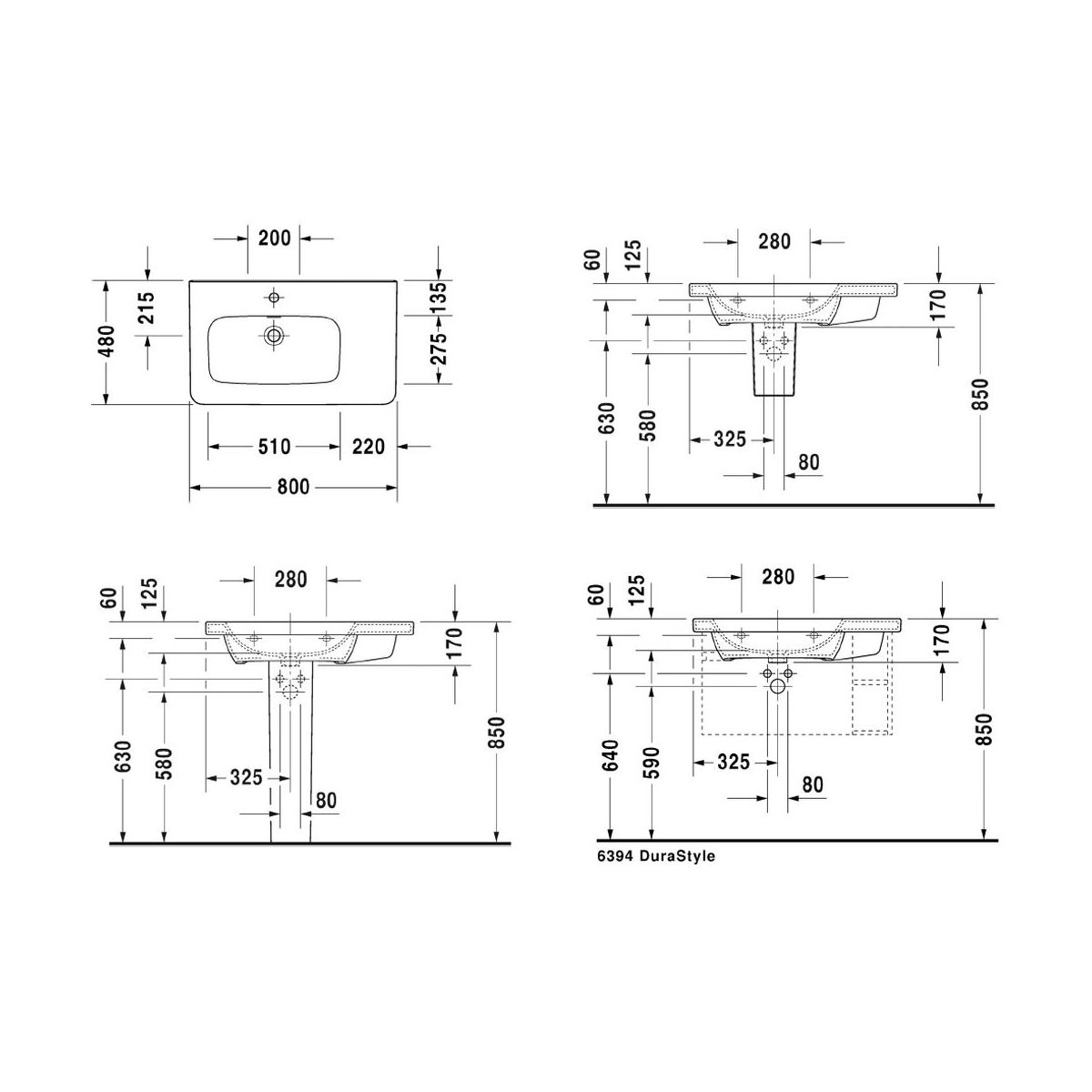 Duravit DuraStyle lavabo 80x48 cm rectangulaire classique-de meuble-avec plateau blanc 23258000001
