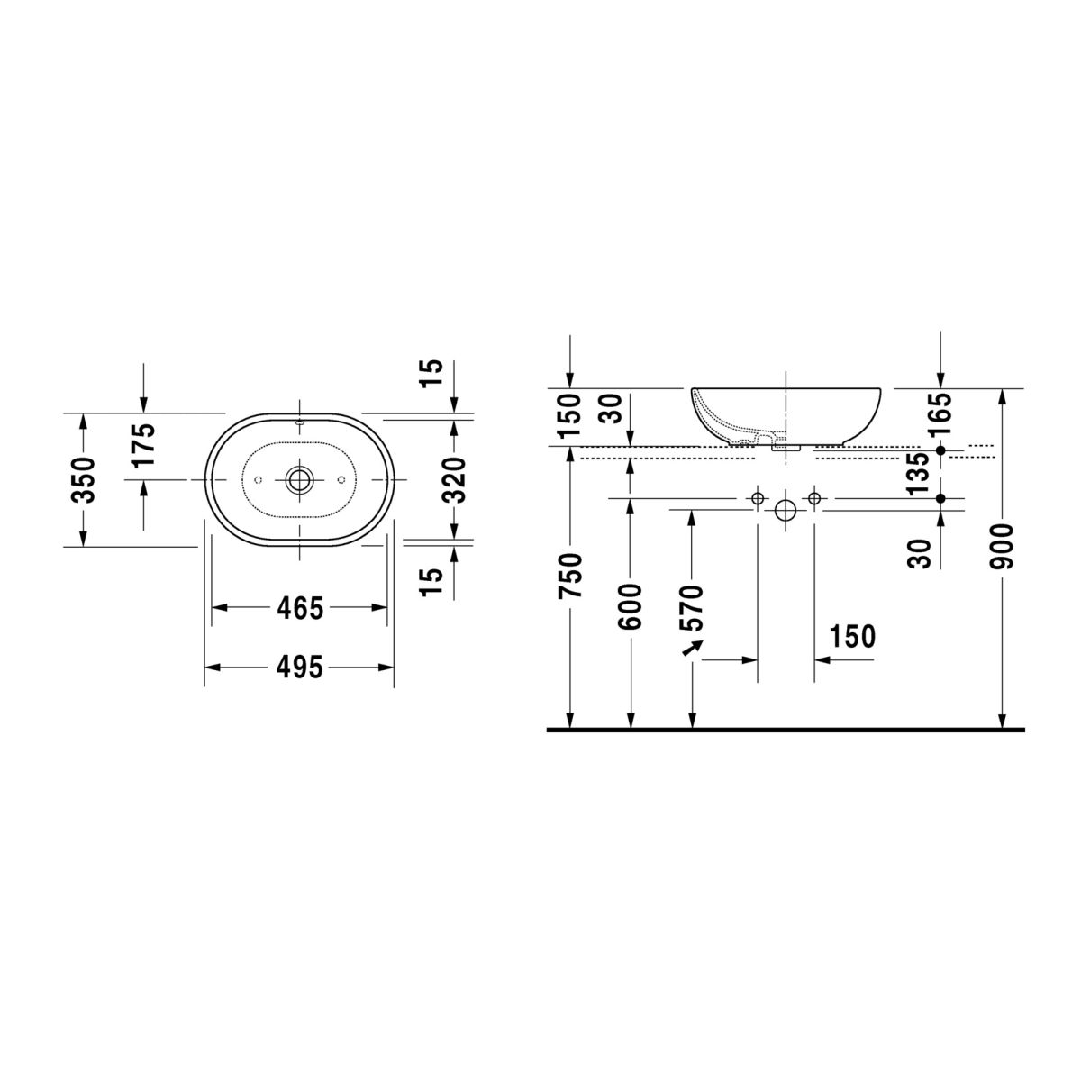 Duravit Foster lavabo 49.5x35 cm ovale à poser blanc 0335500000