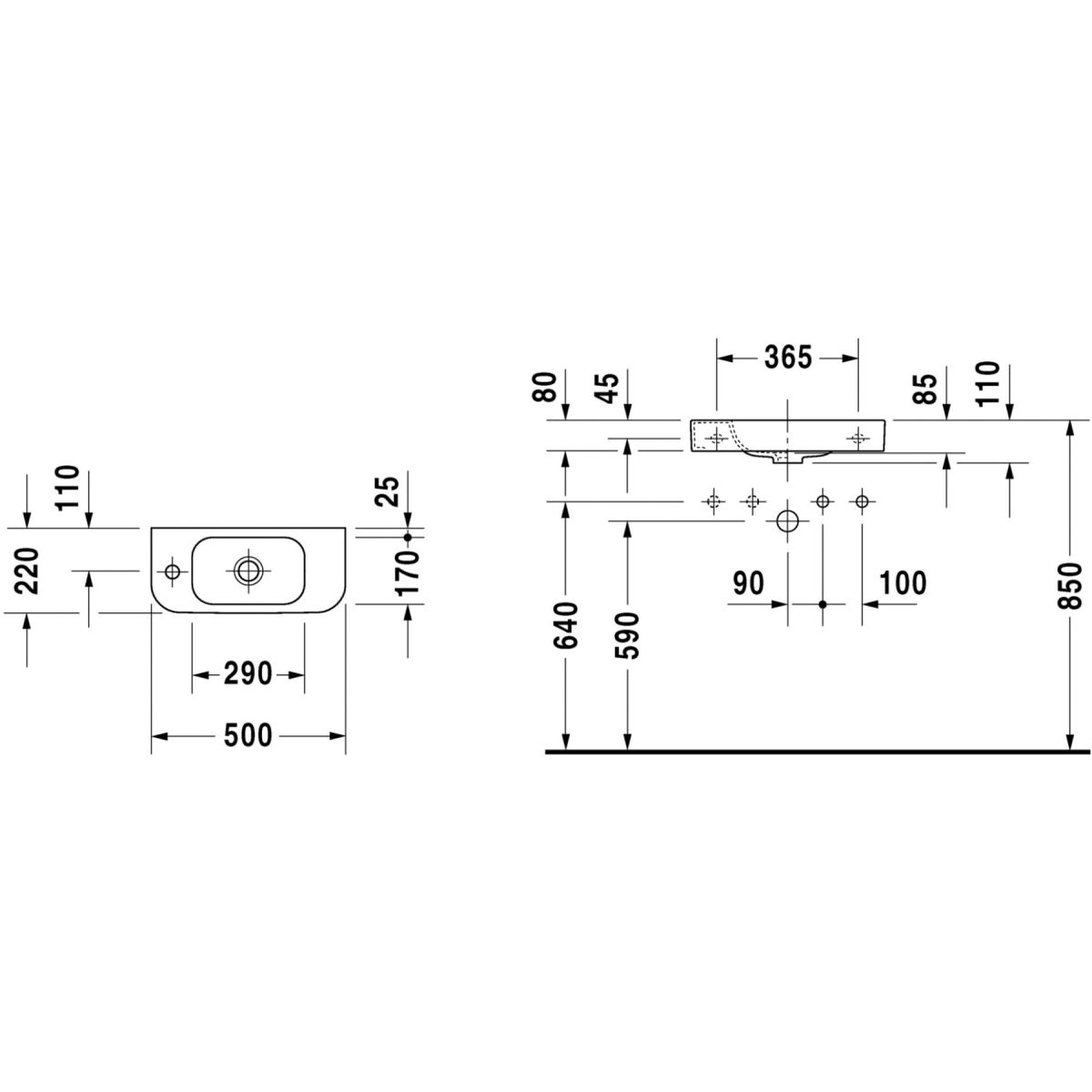 Duravit Happy D.2 lavabo 50x22 cm semi-circulaire classique blanc 0711500009