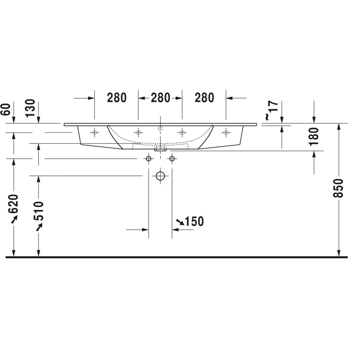 Duravit ME by Starck lavabo 123x49 cm rectangulaire classique-de meuble-avec plateau blanc 23361200001