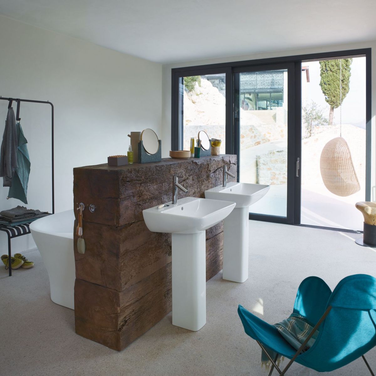 Lavabo blanc neige de la ligne ME by Strack de Duravit. Il s'agit d'un produit destiné à ceux qui apprécient les formes simples et classiques et la haute qualité de fabrication. Il se présente sous son meilleur jour lorsqu'il est associé à un élégant siphon chromé. Un grand avantage de ce lavabo est sa facilité de nettoyage.