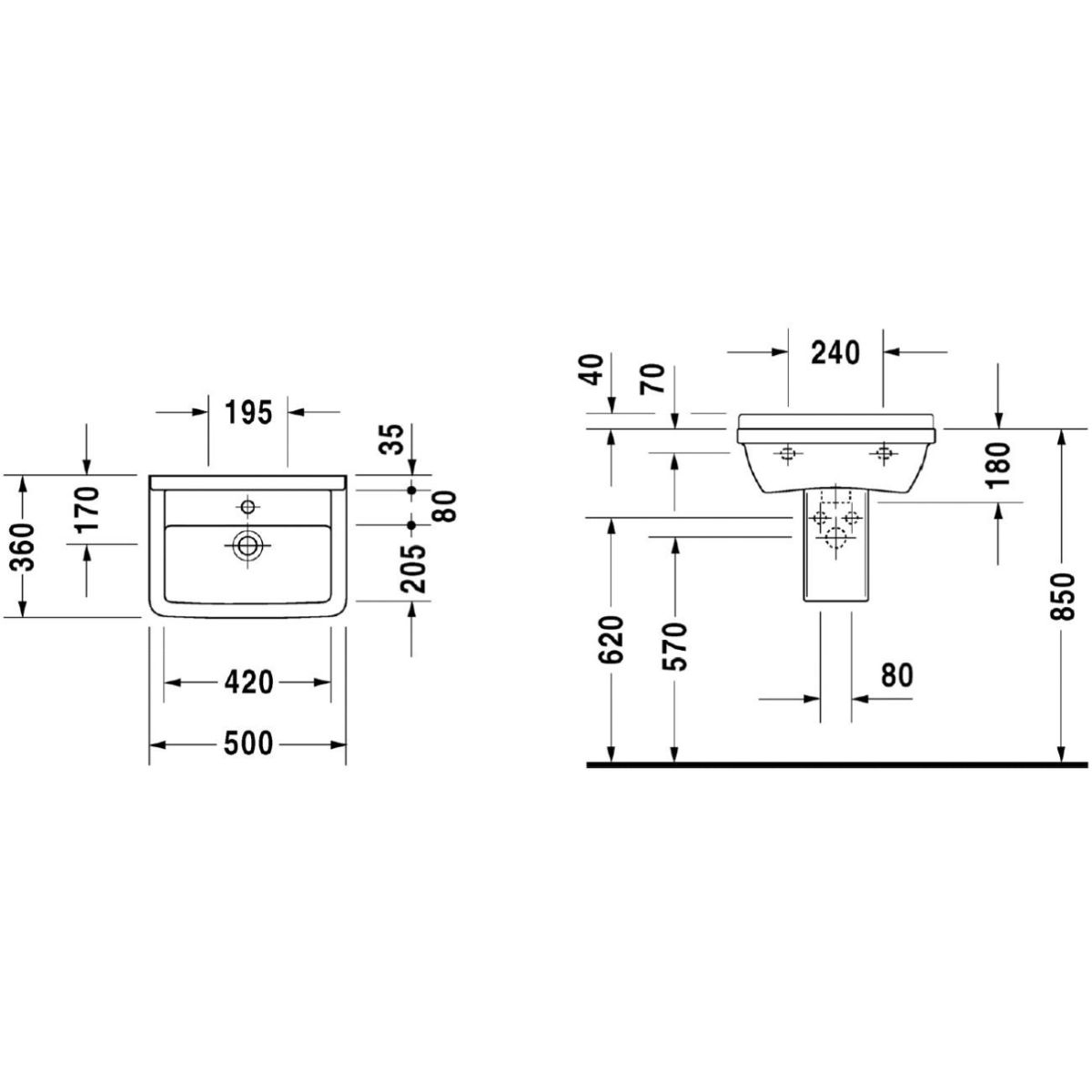 Duravit Starck 3 lavabo 50x36 cm rectangulaire classique blanc 03005000001