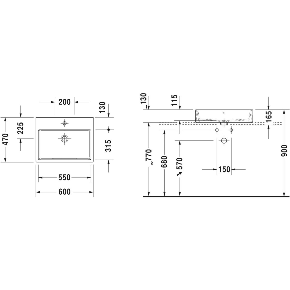 Duravit Vero Air lavabo 60x47 cm rectangulaire à poser blanc 2352600041
