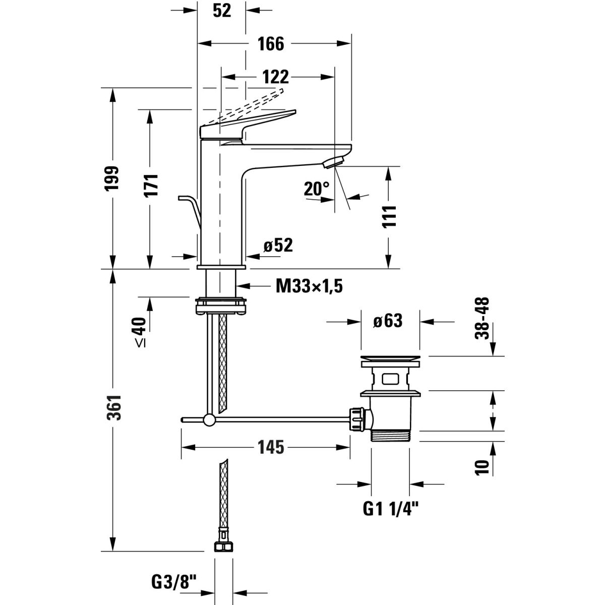 Duravit Wave mitigeur de lavabo sur pied noir WA1020001046