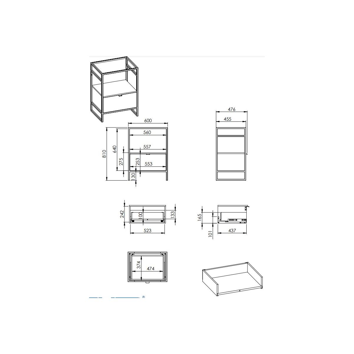 - côtés des tiroirs en acier fin de 13 mm d'épaisseur