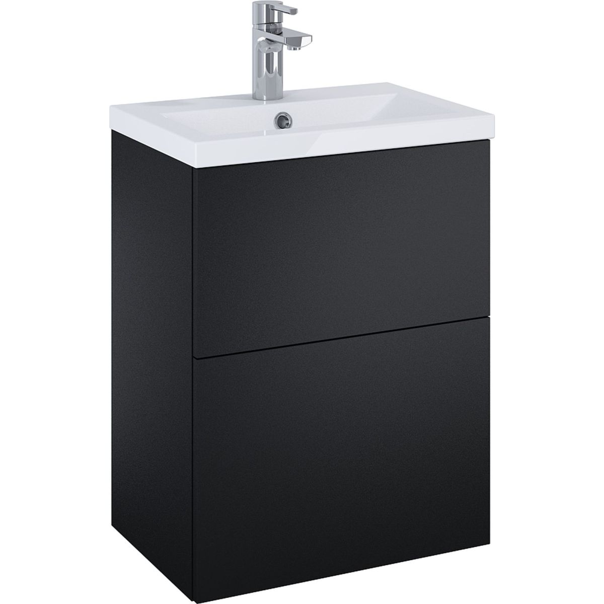 Ensemble Kido 50 cm, 2 tiroirs. Fabriqué à partir de matériaux de haute qualité, façade et corps en panneau laqué noir mat, ferrures avec fermeture automatique silencieuse et douce.