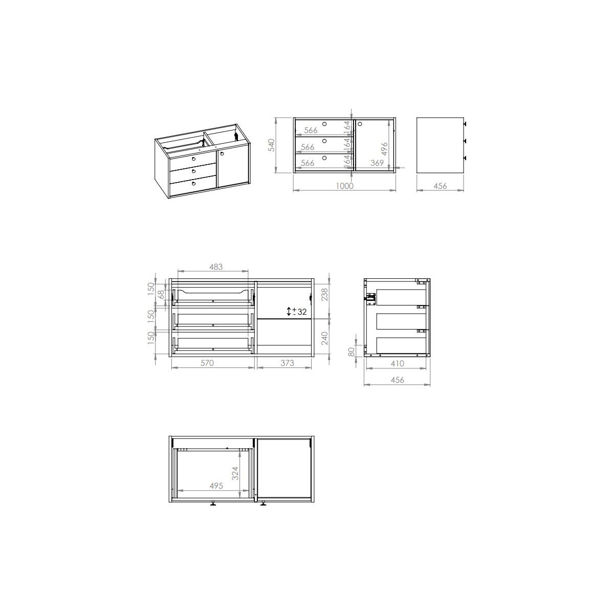 - meuble compatible uniquement avec le plan de travail, peut être utilisé comme commode ou comme meuble sous lavabo