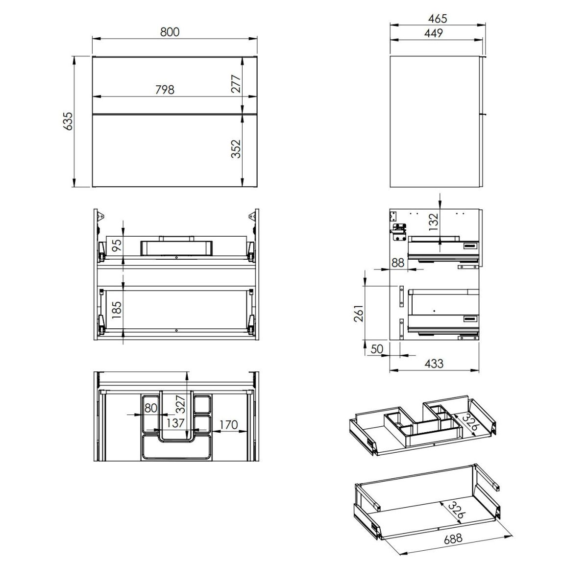 - glissières soft-close, extension totale