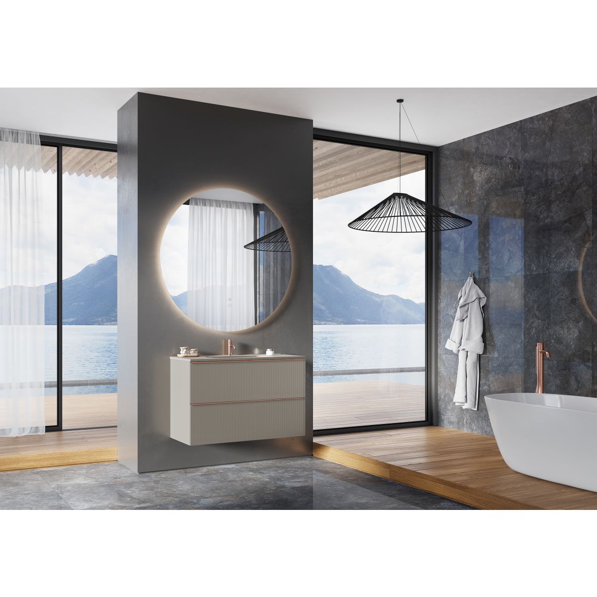 Les poignées à lamelles Look sont le complément parfait des armoires des collections Look et Soho. Leur finition élégante en fait non seulement un complément pratique pour la salle de bains, mais aussi une décoration qui ajoute une touche spéciale à l'intérieur.