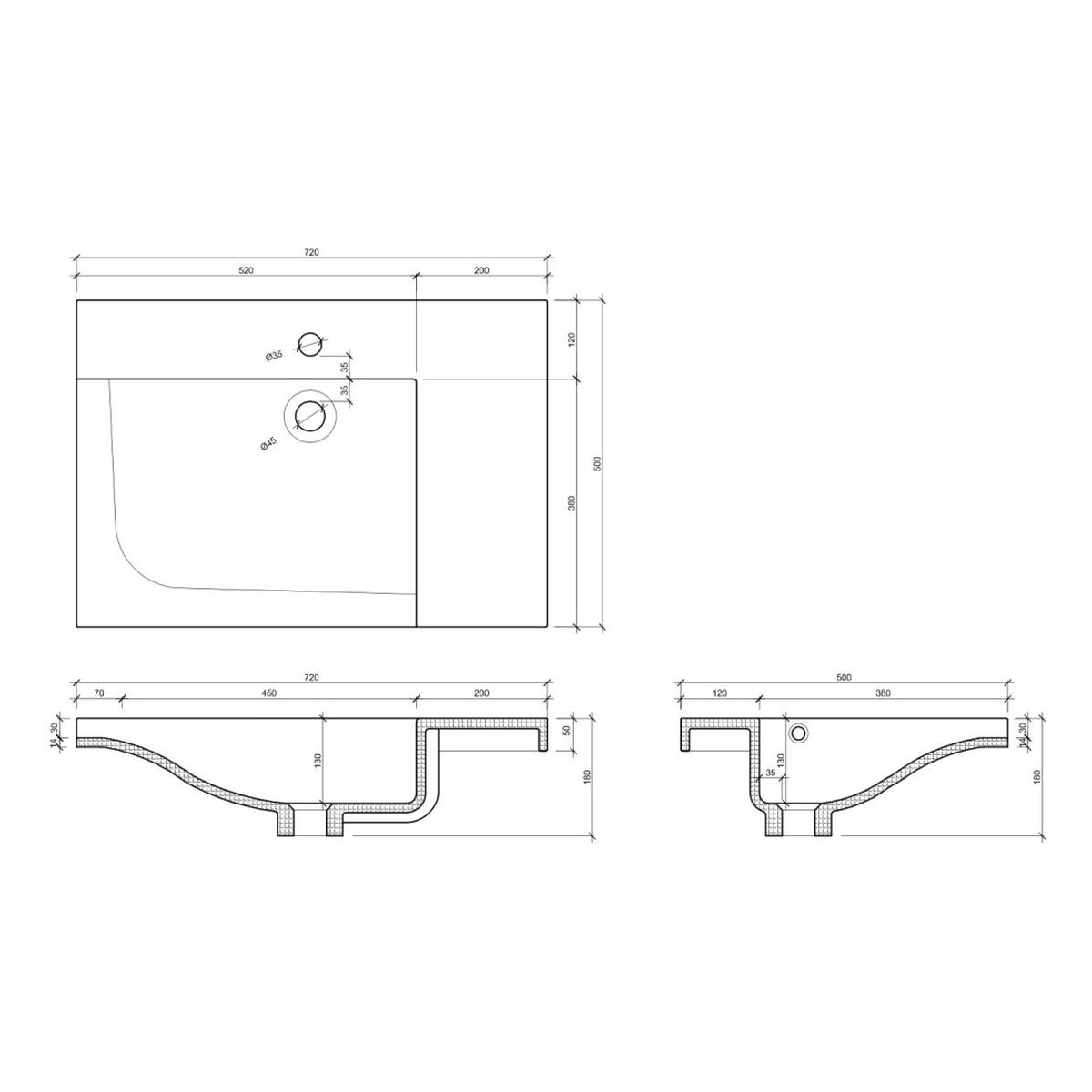Elita Metis lavabo 72x50 cm rectangulaire de meuble blanc RE040700098060