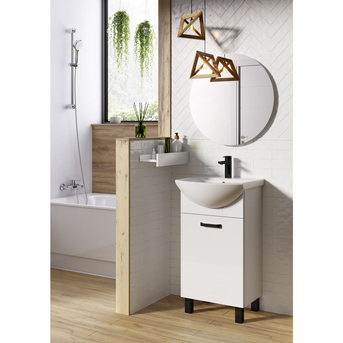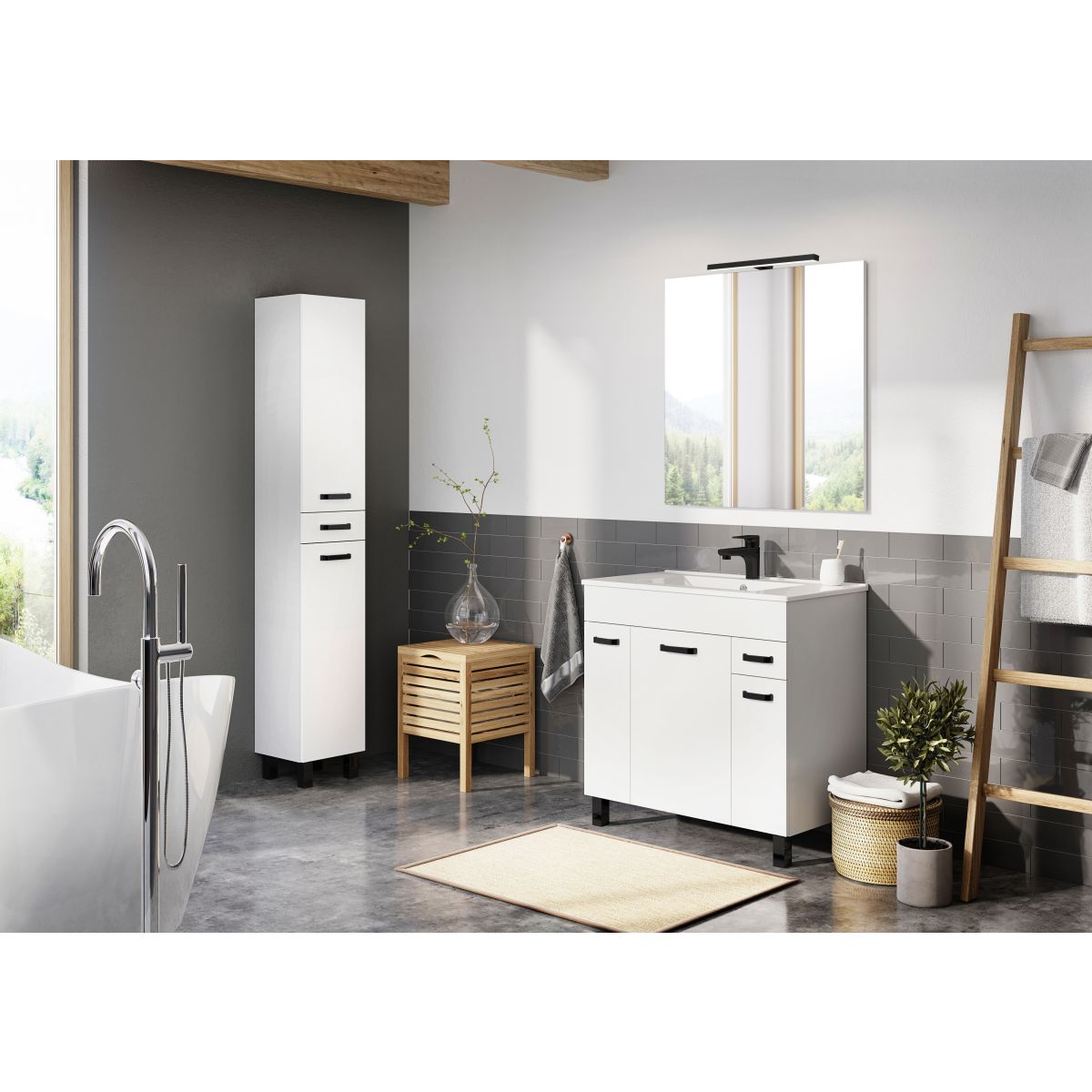 La poignée à deux points dédiée aux meubles de la collection Sunn se caractérise par sa polyvalence et son design intemporel. Sa petite taille et ses lignes épurées lui confèrent un aspect élégant, tandis que sa forme pratique facilite l'ouverture des armoires et l'extraction des tiroirs.