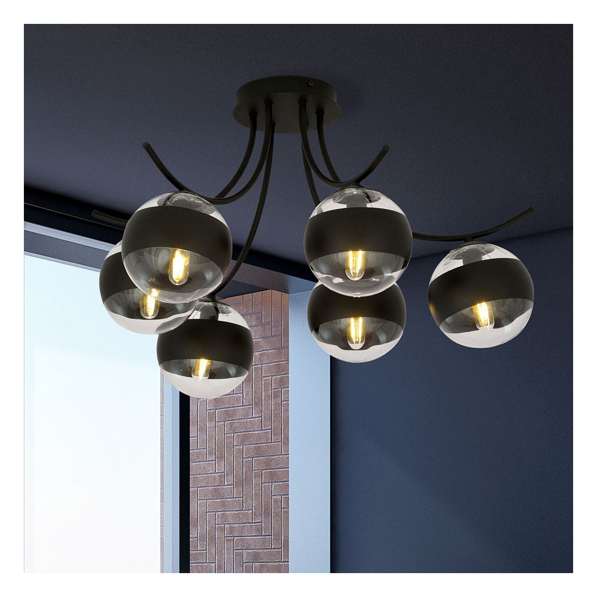 Emibig Boston Stripe plafonnier 6x10 W noir-transparent 1111/6