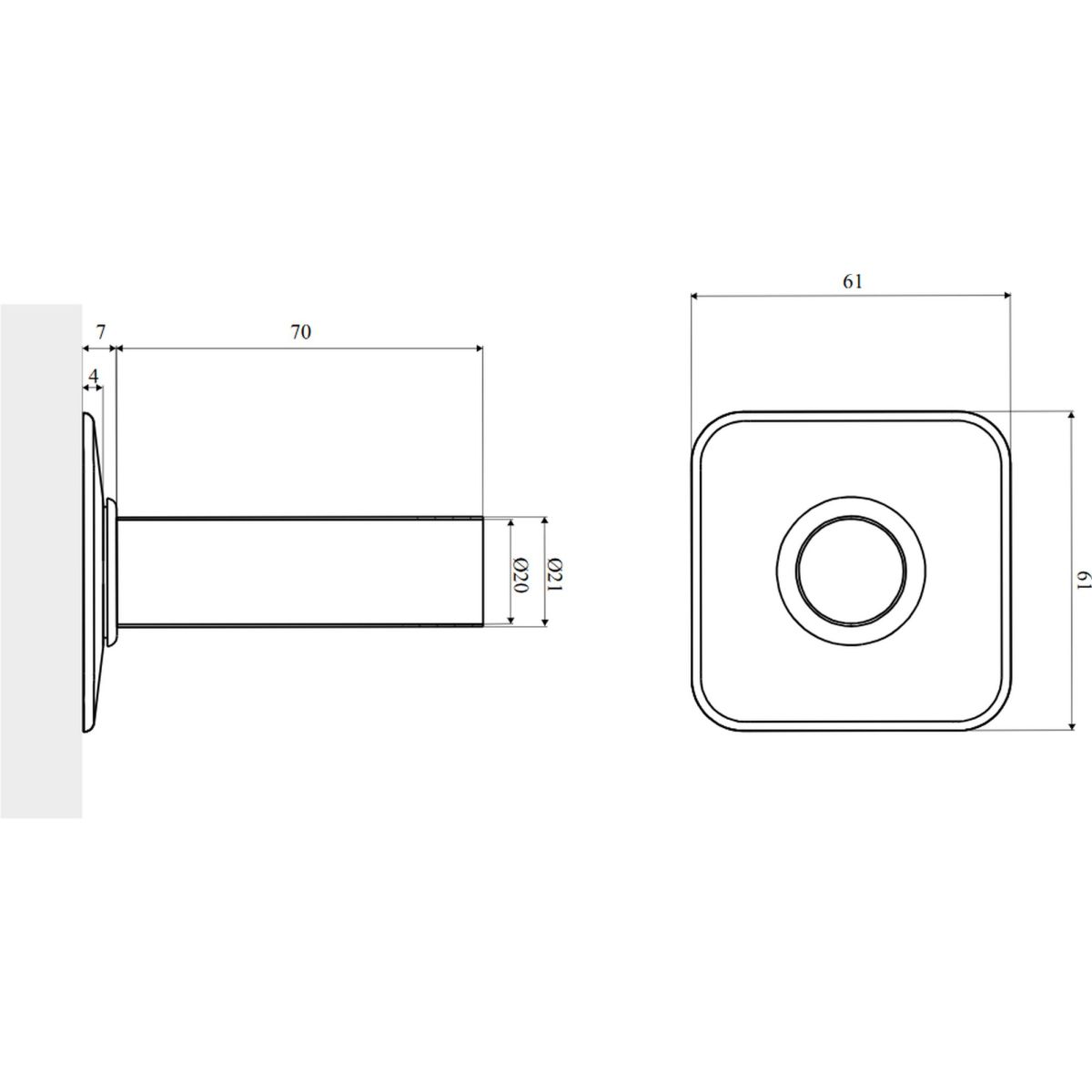 - 2 x rosace carrée simple (trous ¾” = Ø 25 mm)
