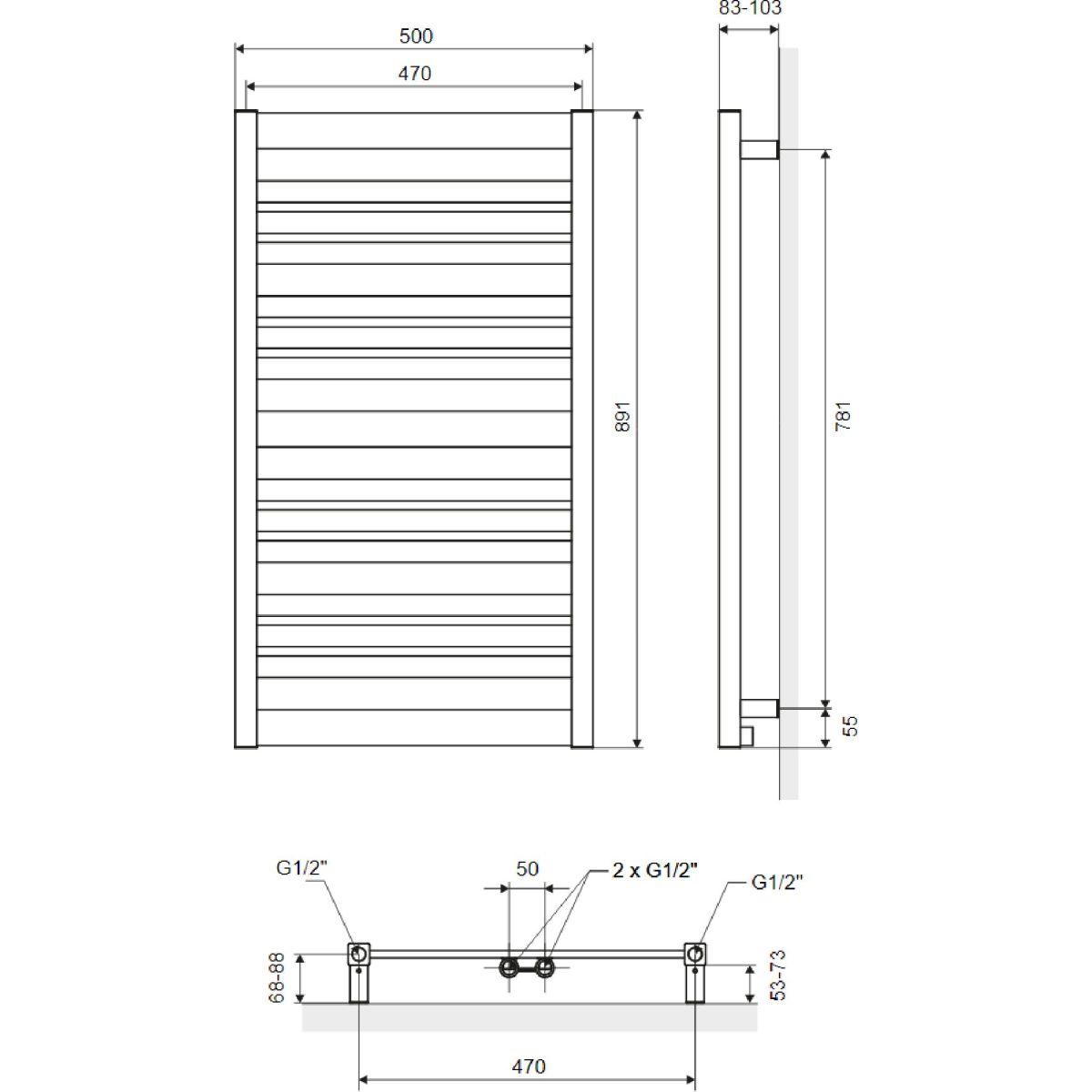 Conti radiateur de salle de bain 89x50 cm, noir mat GREX.CO89.BL