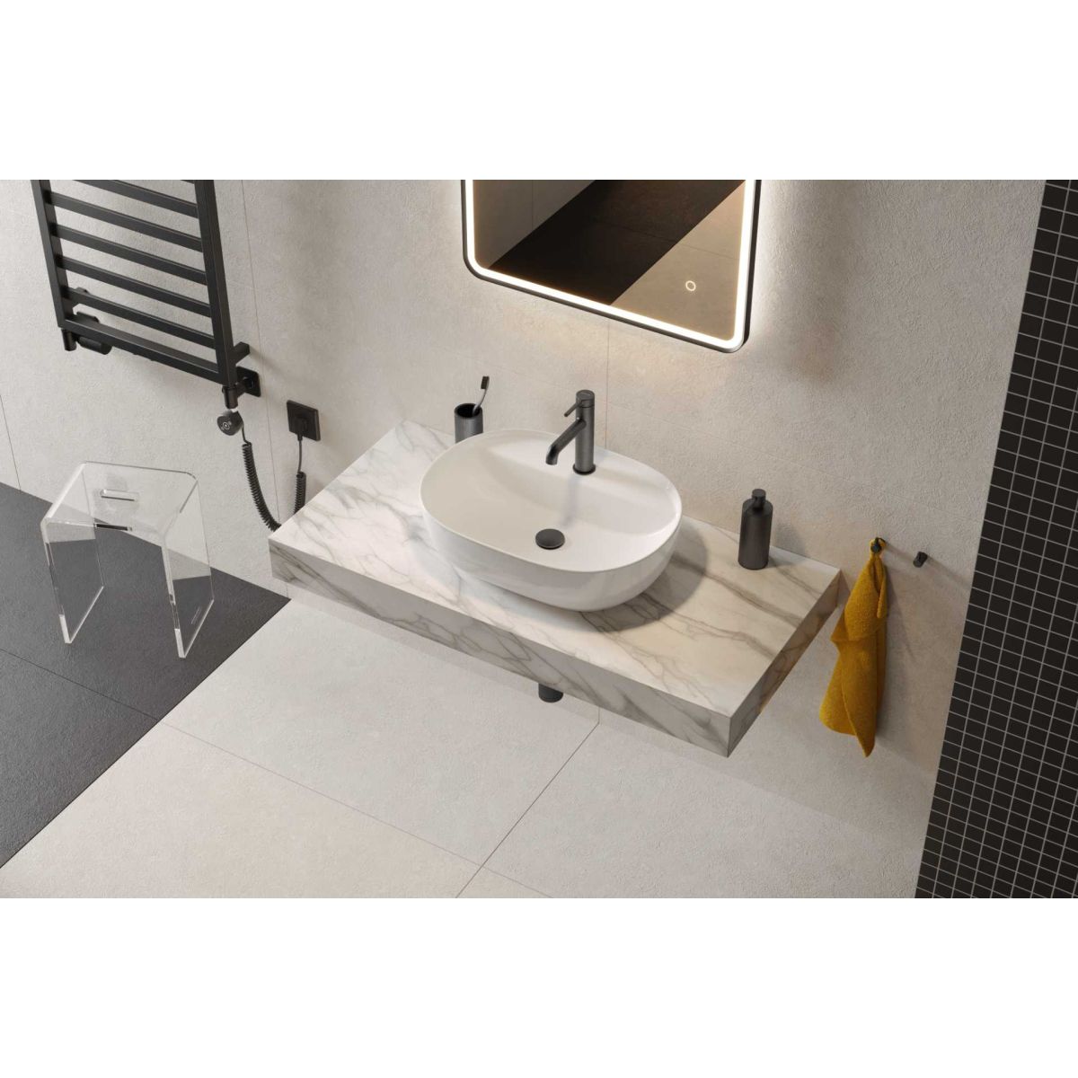 Jima lavabo à poser 61x41 cm ovale avec trou pour robinet, blanc brillant CEAC.2002.615.WH