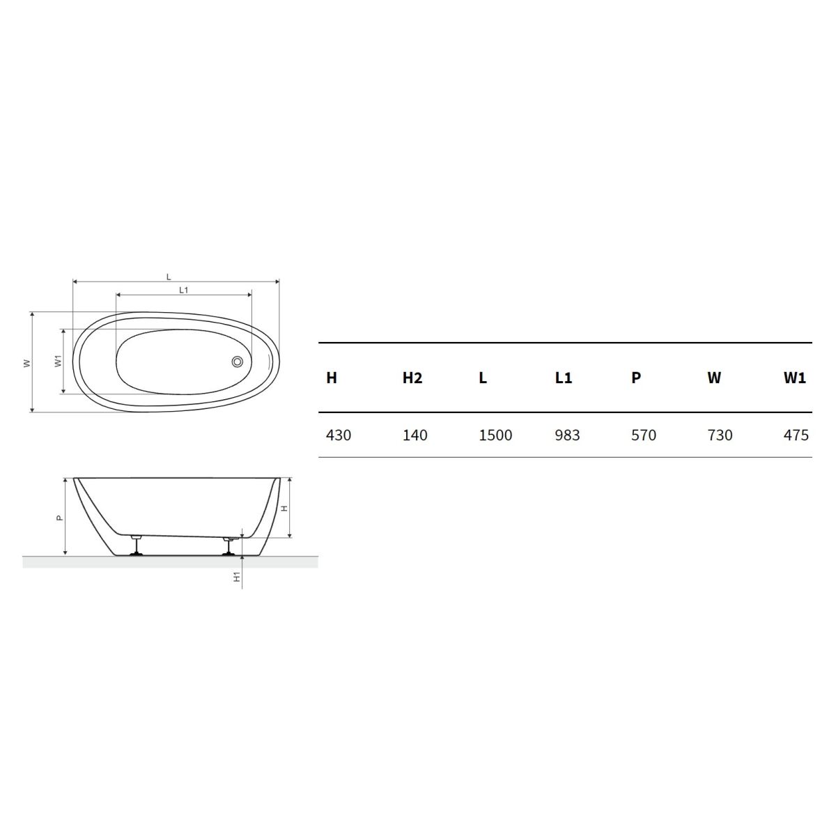 Excellent Olia 2.0 baignoire autoportante 150x73 cm ovale blanc WAEX.OLI2.15WH