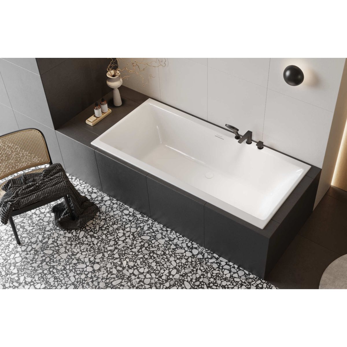 La forme de la baignoire Pryzmat Slim 2.0 fait référence à des lignes simples et épurées, adoucies par les courbes légèrement incurvées des appuis intérieurs. Il s'agit d'un élément non seulement esthétique, mais aussi fonctionnel : il permet de prendre un bain confortablement, quelle que soit la taille de l'utilisateur.