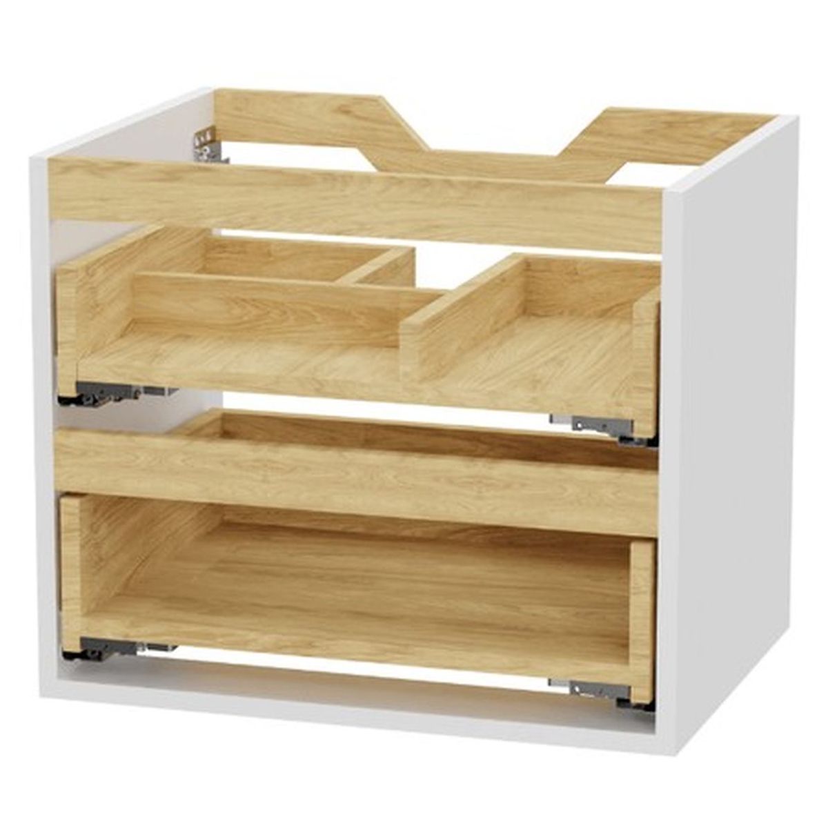 Tuto 2.0 corps de meuble 60 cm, 2 tiroirs sans façade, sans plateau, blanc brillant/chêne MLEX.2172.600.WHBL