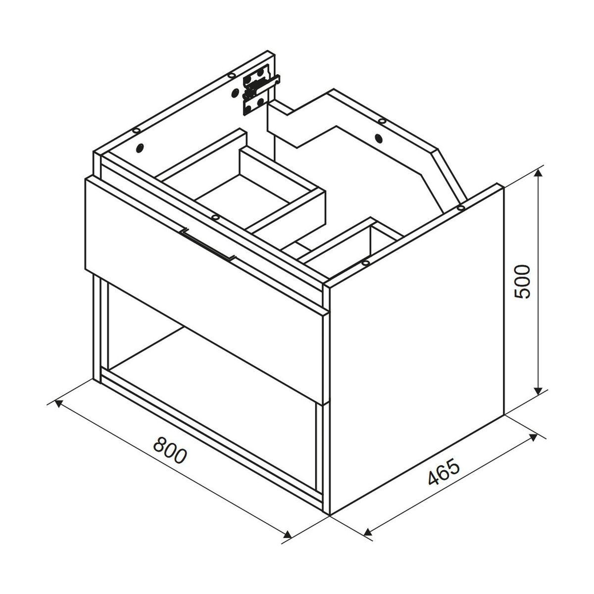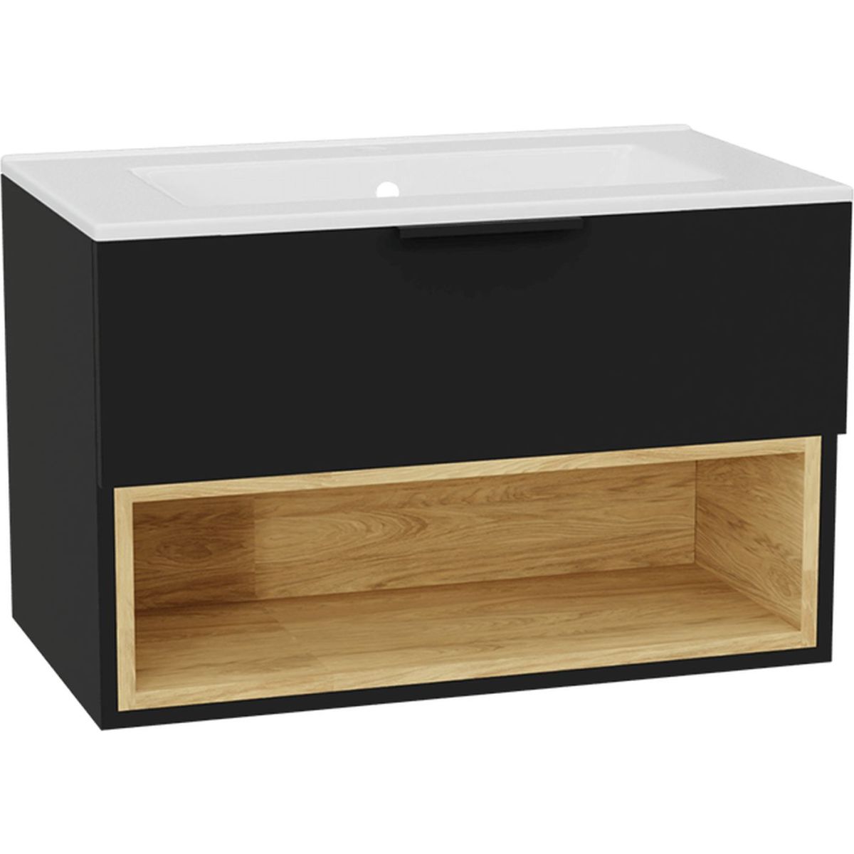 Tuto 2.0 meuble sous-lavabo 80 cm, 1 tiroir sans façade, sans plateau, Noir mat/chêne MLEX.2171.800.BKBL
