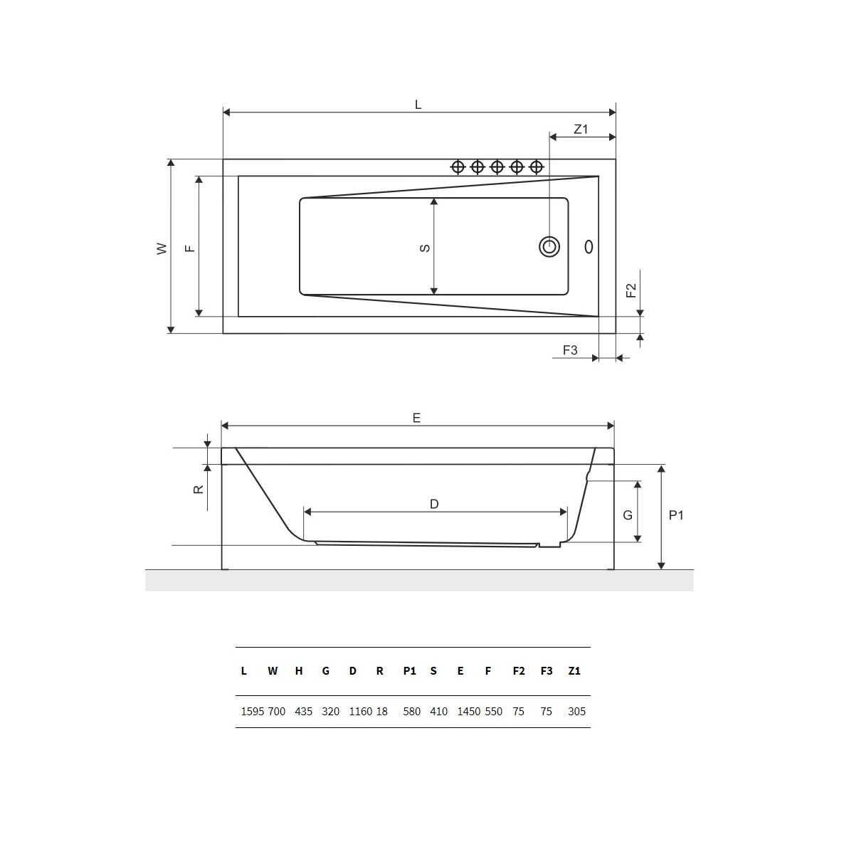 Excellent Wave baignoire rectangulaire 159.5x70 cm blanc WAEX.WAV16WHS