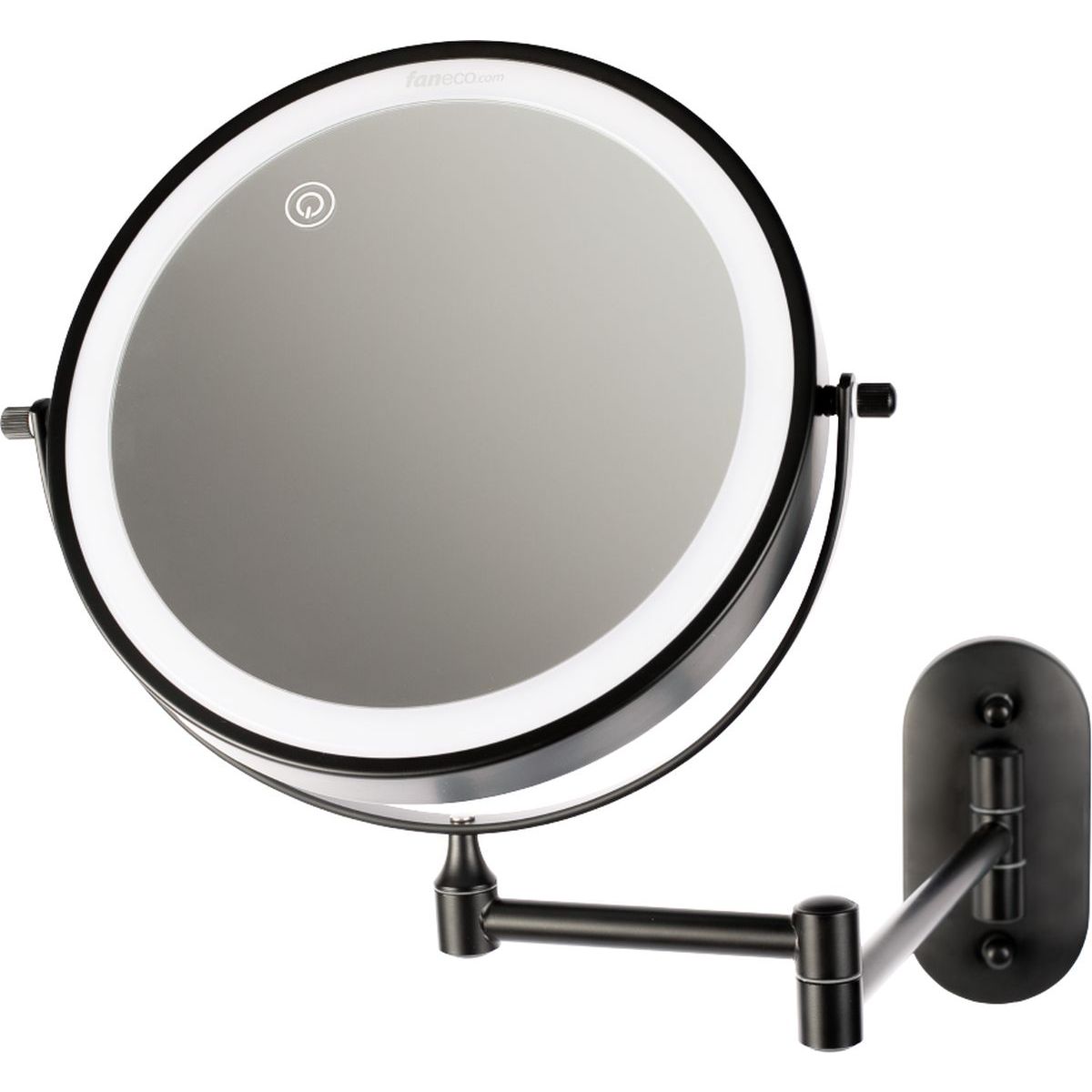 Faneco Como Black miroir cosmétique 20x20 cm arrondi avec éclairage noir M200LBSBL