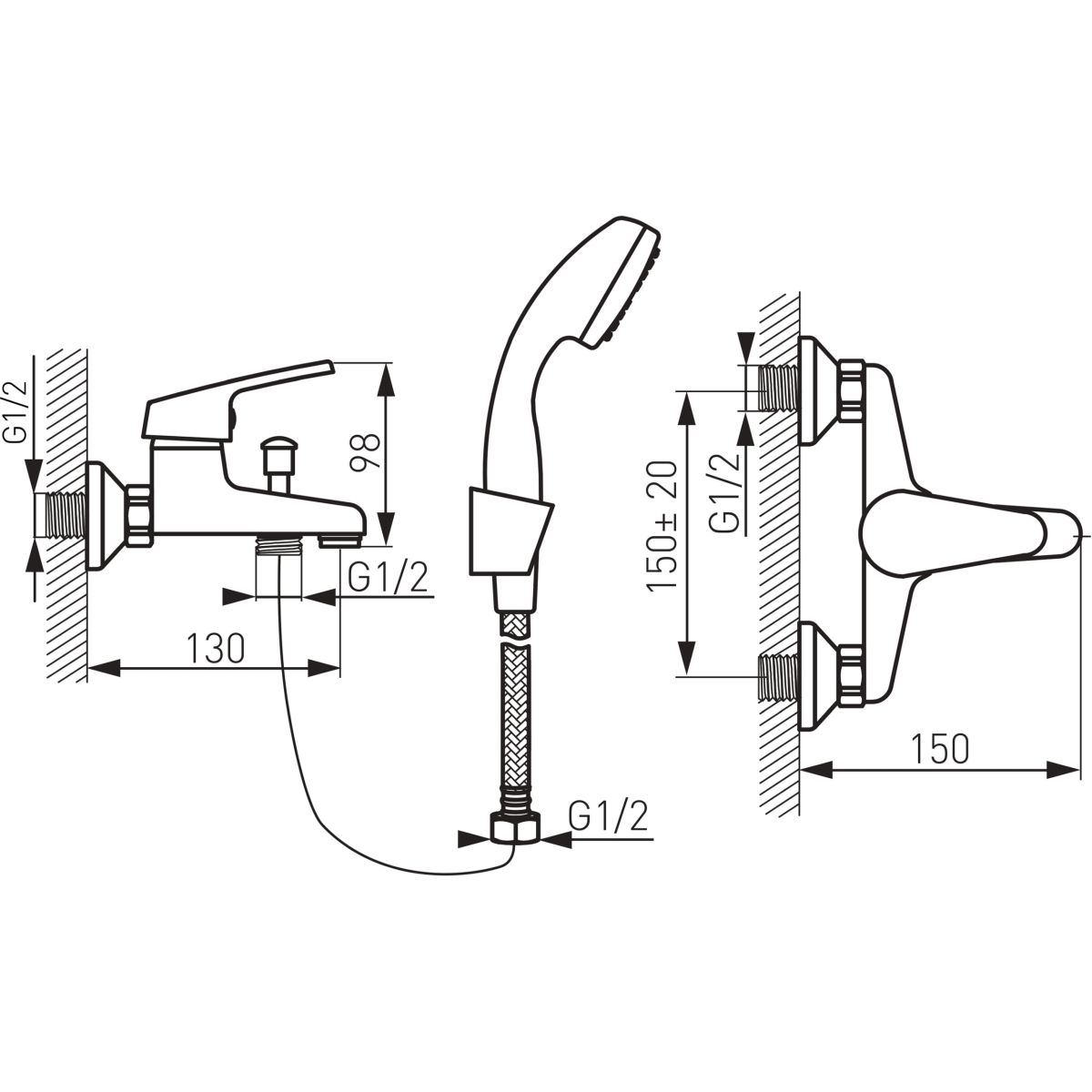 - raccordement G½ excentrique espacement 150 ± 20 mm