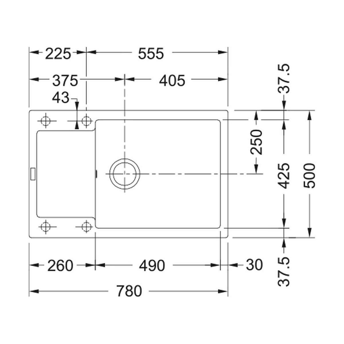 - dimensions de l'évier : 78 x 50 cm