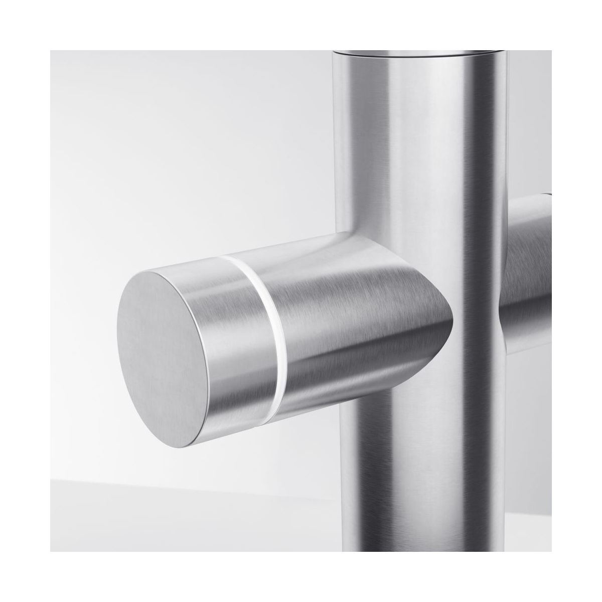 Le système de cuisine 6 en 1 contenu dans l'élégant mitigeur à deux poignées avec bec fixe constitue une percée en matière de fonctionnalité. Tous les composants - chaudière, unité de réfrigération, bouteille de CO ? et tête de filtre - sont contenus dans un seul boîtier compact, ce qui permet une installation simple sous l'évier. La commande électronique avec indication LED intuitive et une application mobile dédiée permettent un contrôle total de l'unité.