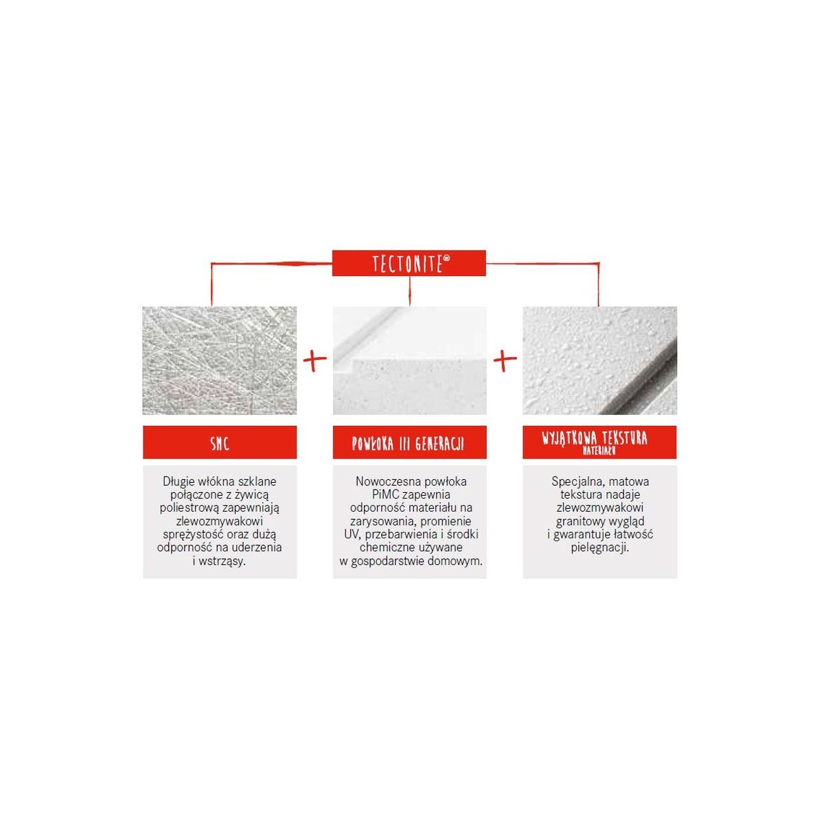 - Tectonite® est un matériau synthétique innovant et breveté par Franke, composé de longues fibres de verre, d'un revêtement PiMC de haute technologie et d'une texture mate unique