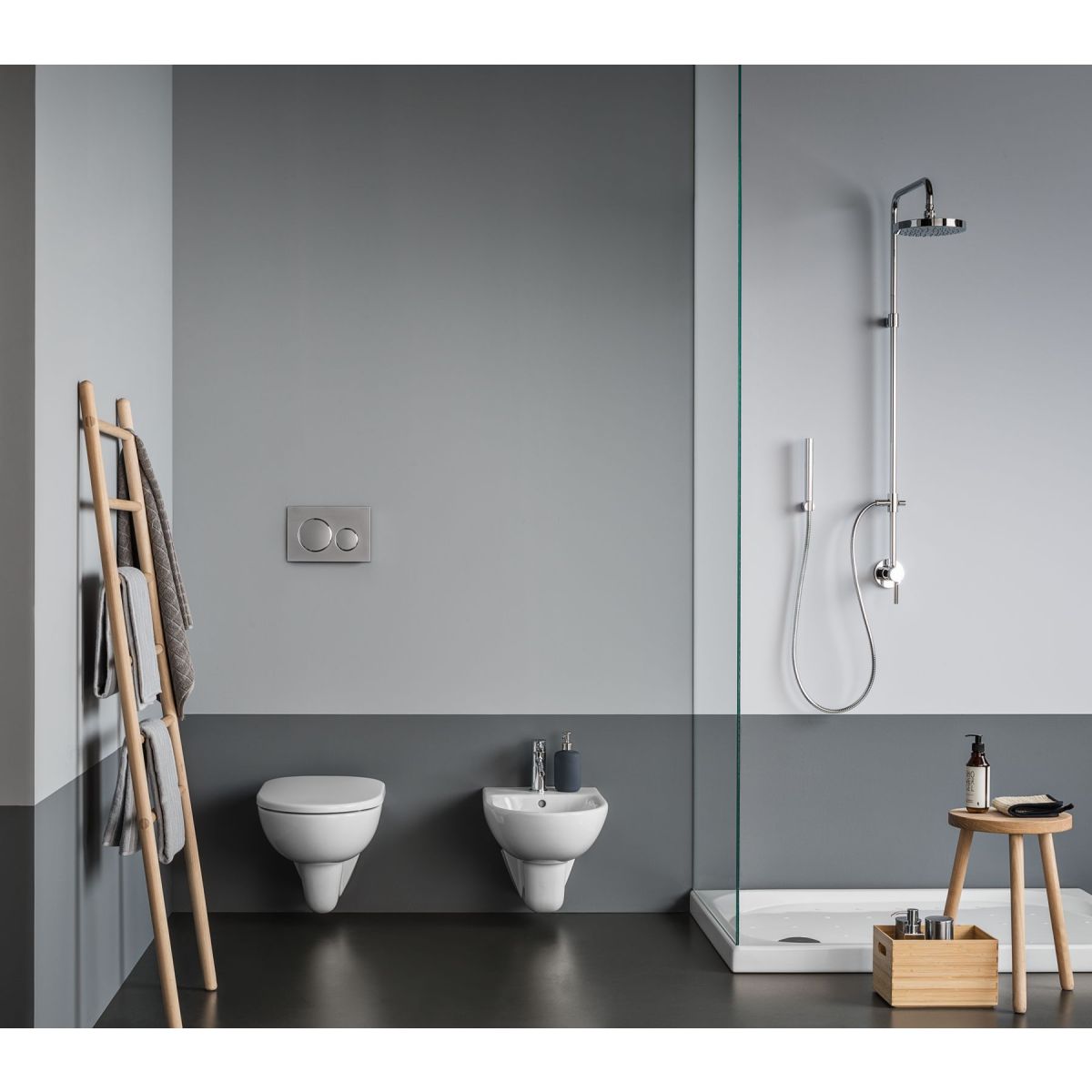 La cuvette Selnova de Geberit est équipée de la technologie Rimfree. Cette technologie a permis de supprimer la bride intérieure des toilettes, ce qui se traduit directement par des niveaux d'hygiène accrus et une plus grande facilité de nettoyage. La cuvette est fabriquée avec des matériaux de haute qualité, ce qui se traduit par un confort accru.
