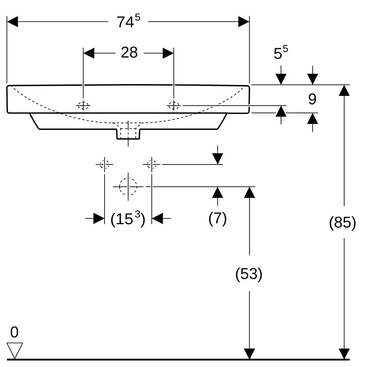 Geberit Smyle Square lavabo 74.5x48 cm rectangulaire classique-de meuble-à poser blanc 500.249.00.2