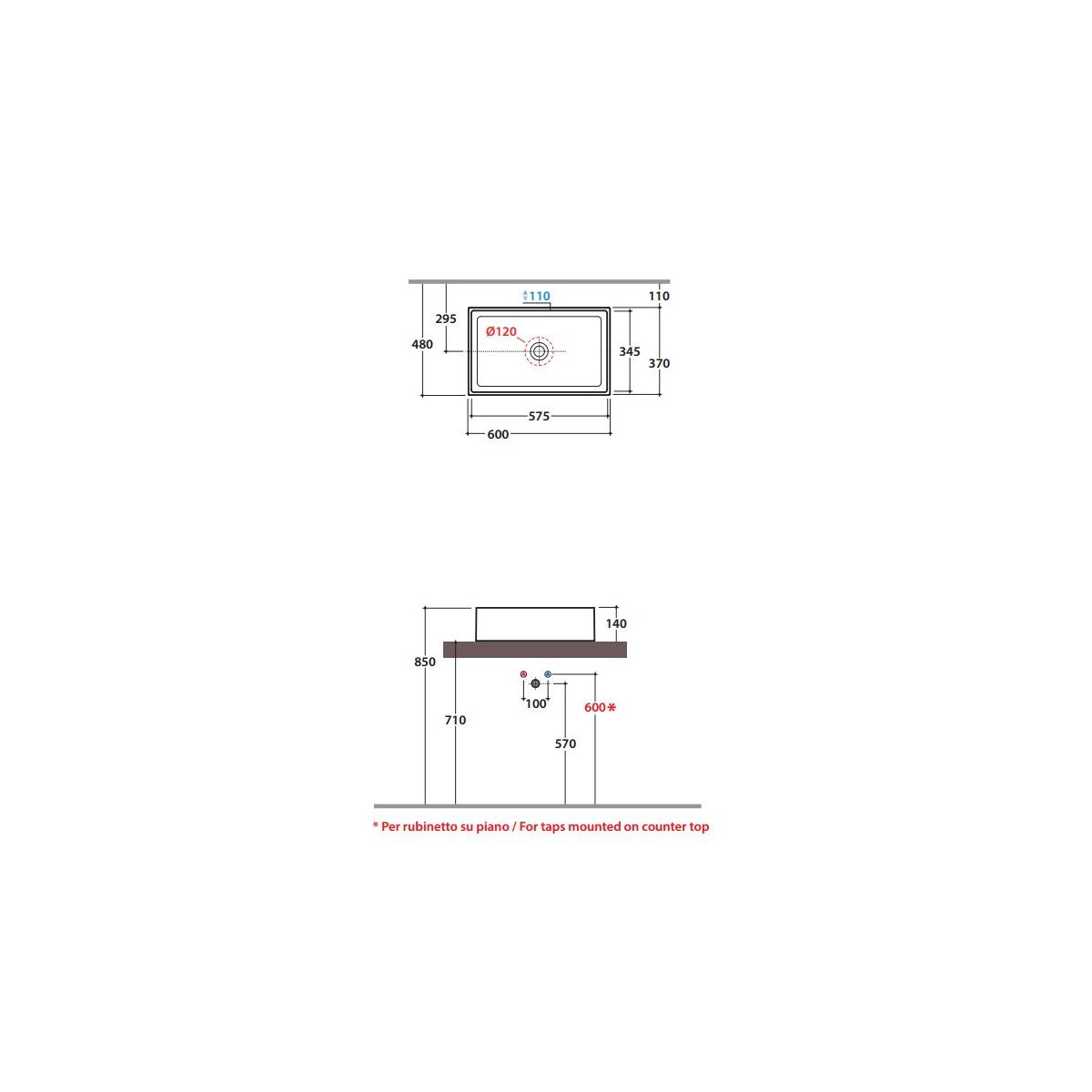Globo Forty3 lavabo 60x37 cm rectangulaire à poser blanc FO062.BI