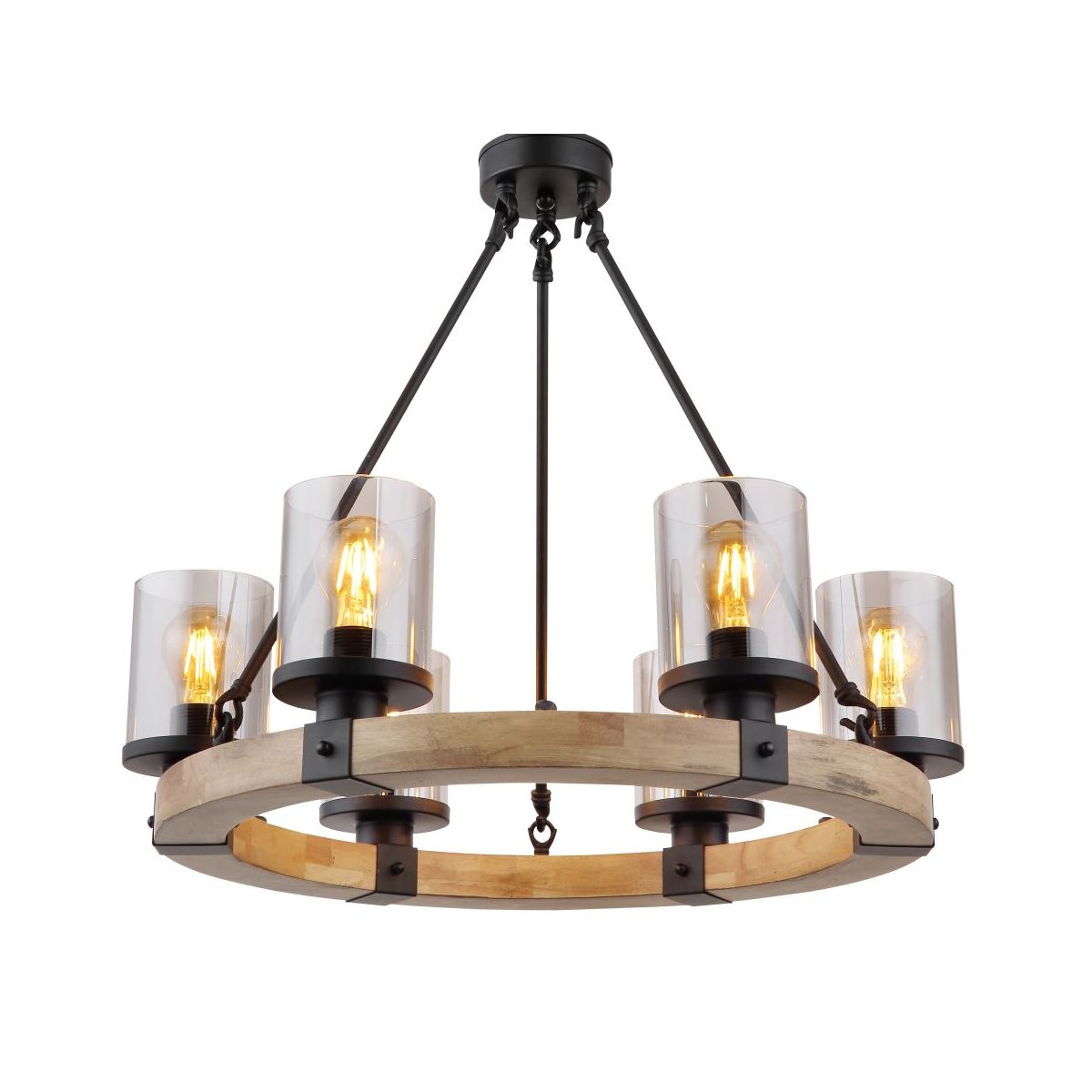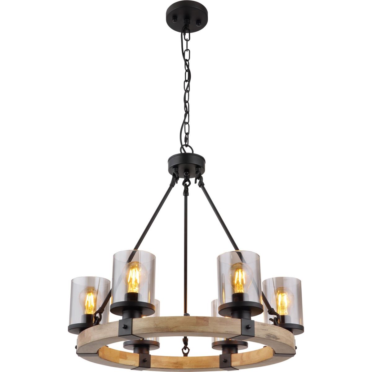 Globo Lighting Lila lampe suspendue 6x60 W noir-fumé-bois 15555-6H