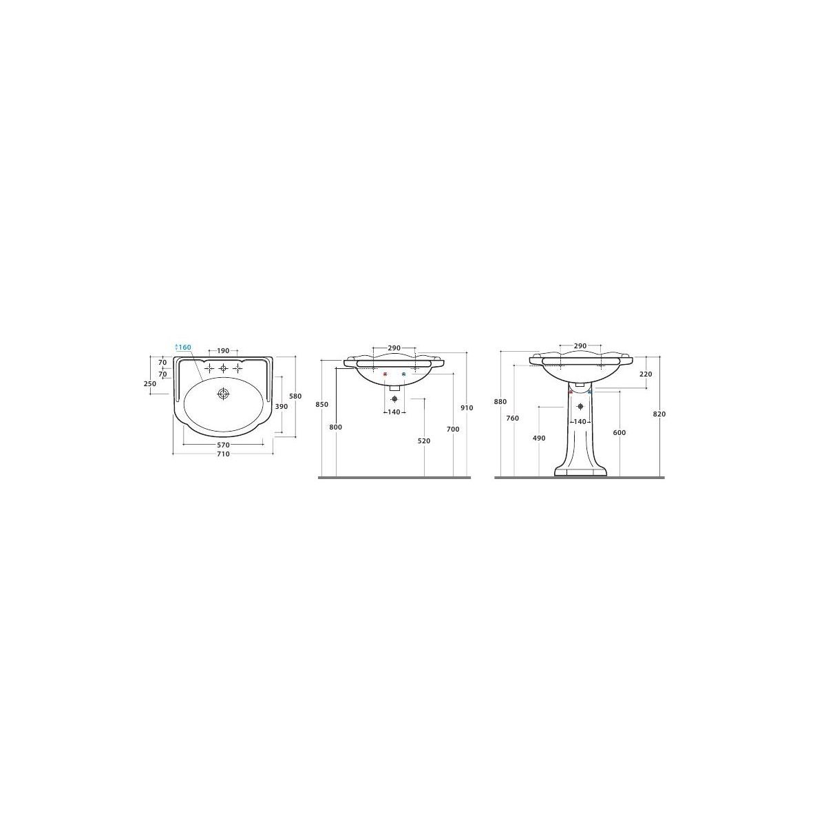 Globo Paestum lavabo 71x57 cm semi-circulaire classique-encastrée blanc PA006.BI