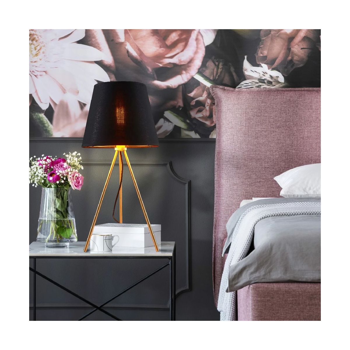 L'abat-jour noir associé au socle métallique confère à la lampe un caractère intemporel. La forme simple et les couleurs discrètes permettent au modèle de s'intégrer harmonieusement aussi bien dans les intérieurs classiques élégants que dans les espaces modernes décorés dans un style minimaliste ou industriel. Grâce à l'abat-jour subtil, la lumière se diffuse doucement, créant une atmosphère chaleureuse propice à la détente et au repos.
