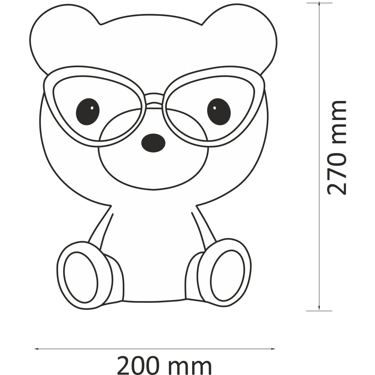 La lampe de chevet pour enfants Goldlux Miś Okularnik 1 × 2,5 W rose 327208 mesure 25 cm de haut et 19,5 cm de large, ce qui lui permet de se glisser facilement sur une table de chevet ou une étagère. La batterie intégrée et le câble USB permettent de recharger et d'utiliser la lampe sans avoir à la brancher sur le secteur. C'est également une solution idéale pour voyager ou passer la nuit à l'extérieur.