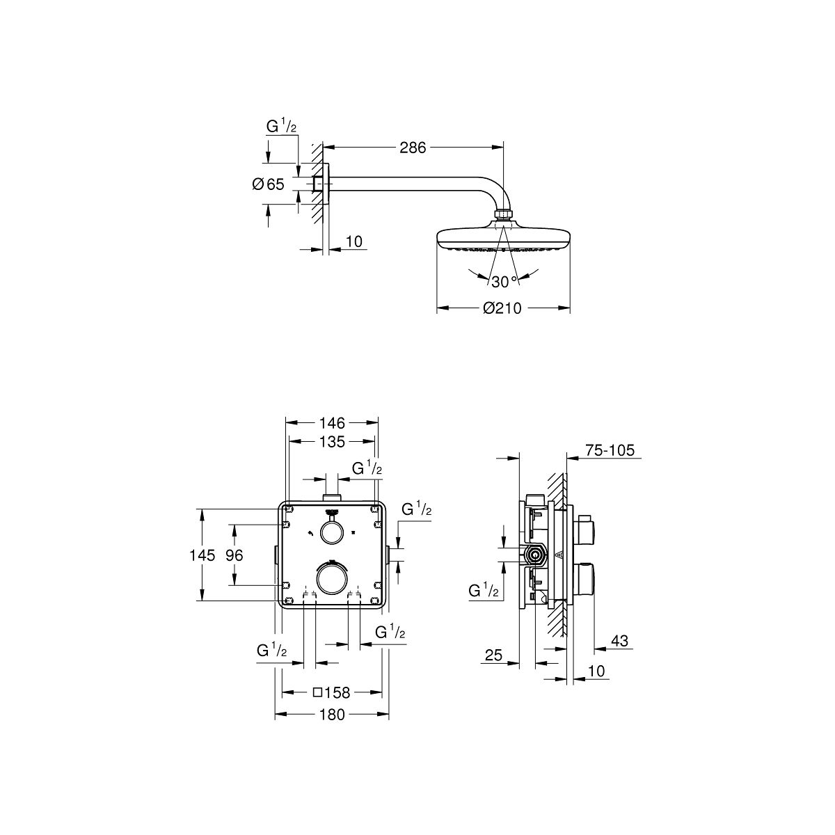 Grohe Grohtherm kit baignoire-douche encastré avec thermostat oui chrome 34728000