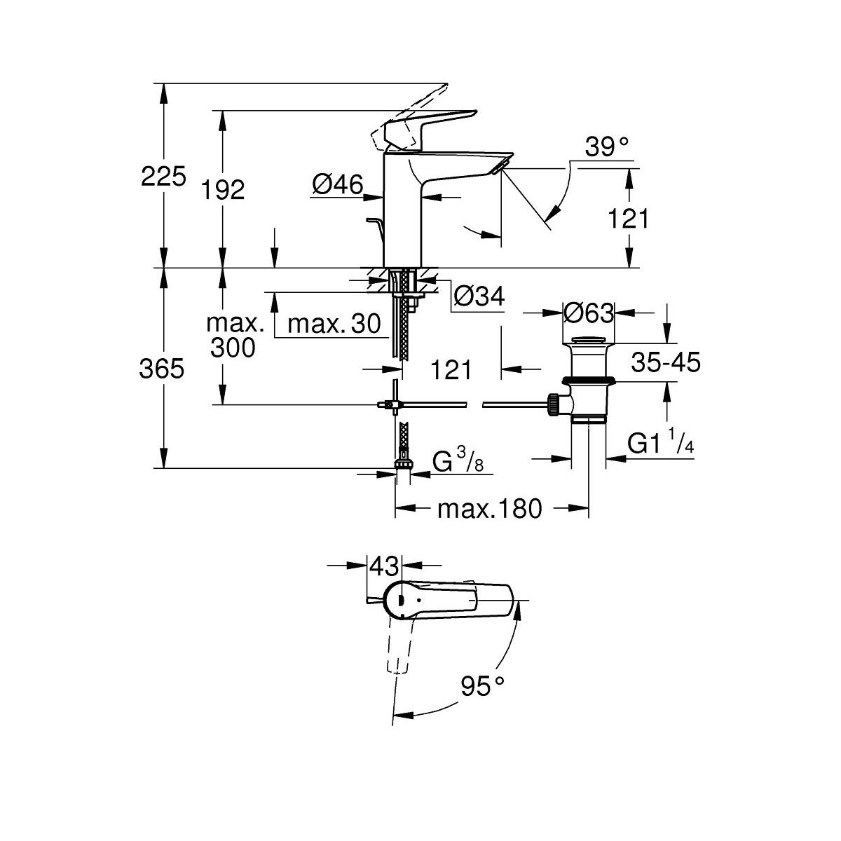 Grohe Start mitigeur de lavabo sur pied StarLight Chrome 23552002