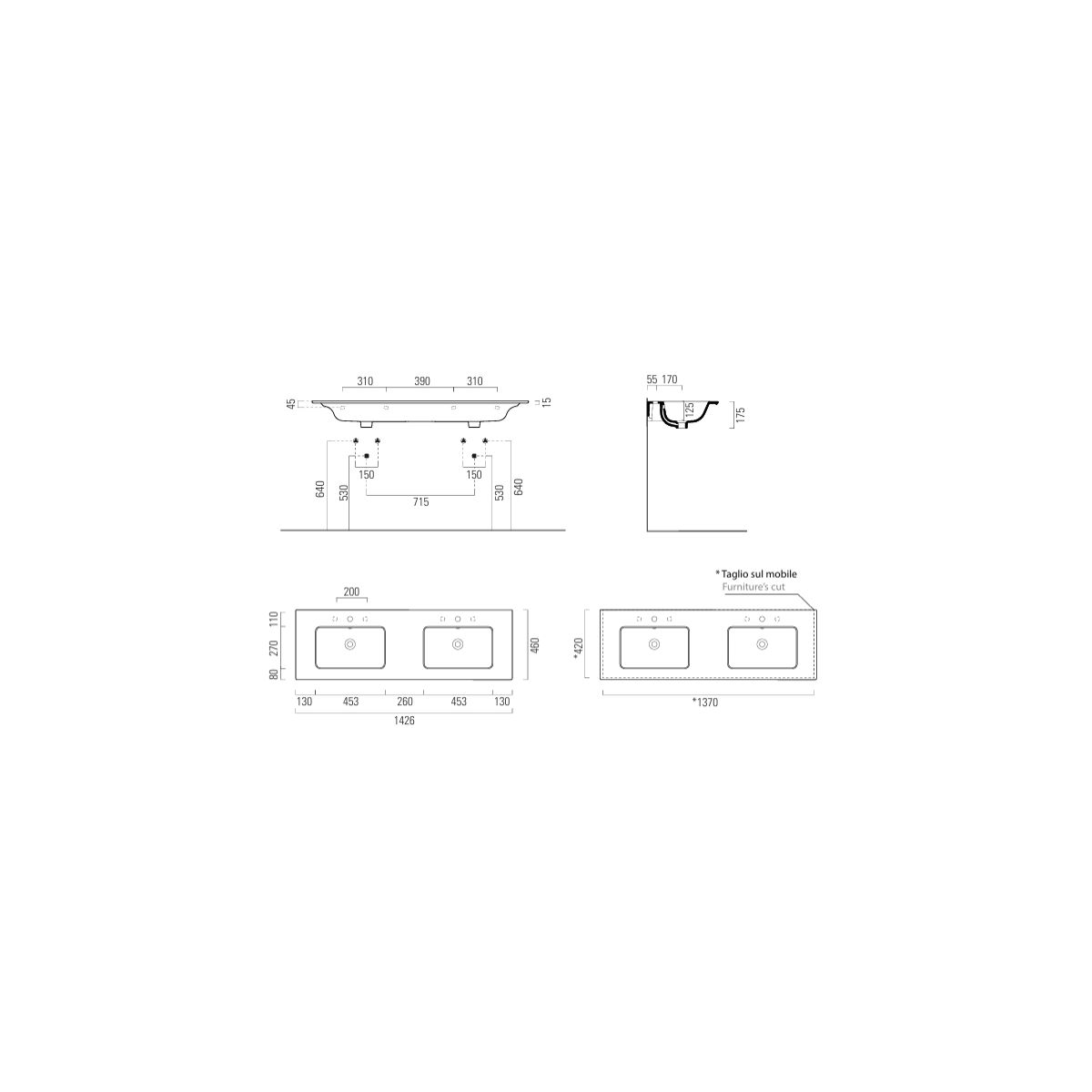 GSI Pura lavabo 142x46 cm rectangulaire encastrée-double blanc 8889111