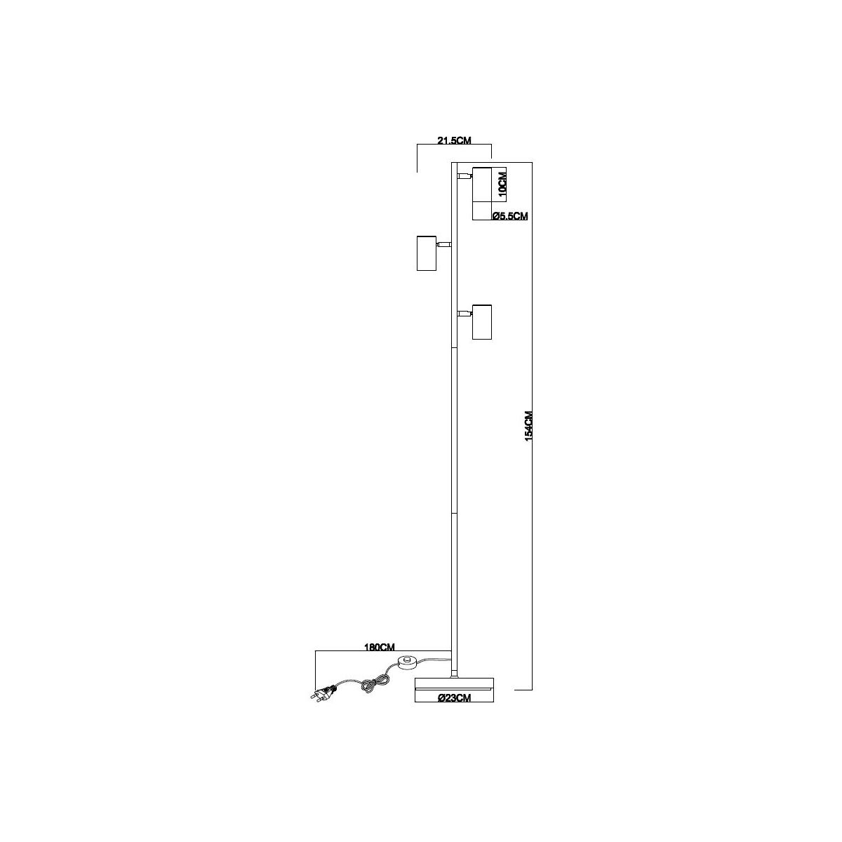 La lampe sur pied GTV Veneto, d'une hauteur de 154 cm, se distingue par son design simple et sa finition noire mate. Sa forme élancée, posée sur un socle stable, s'intègre parfaitement dans les intérieurs modernes et minimalistes.
