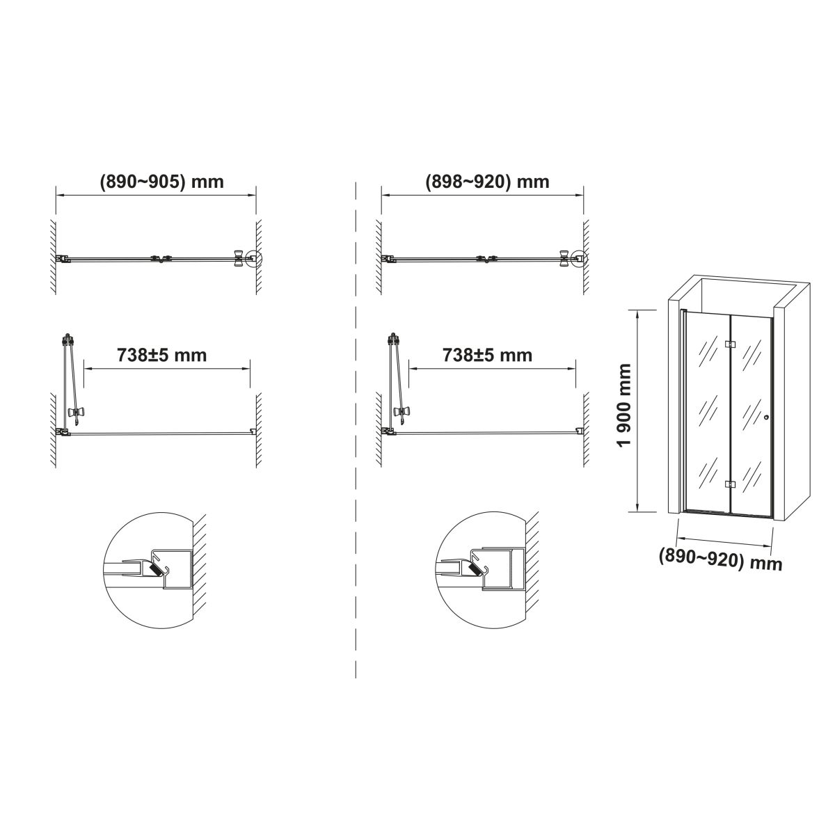 Hagser Carla porte de douche 90 cm pliable noir mat/verre transparent HGR17000021